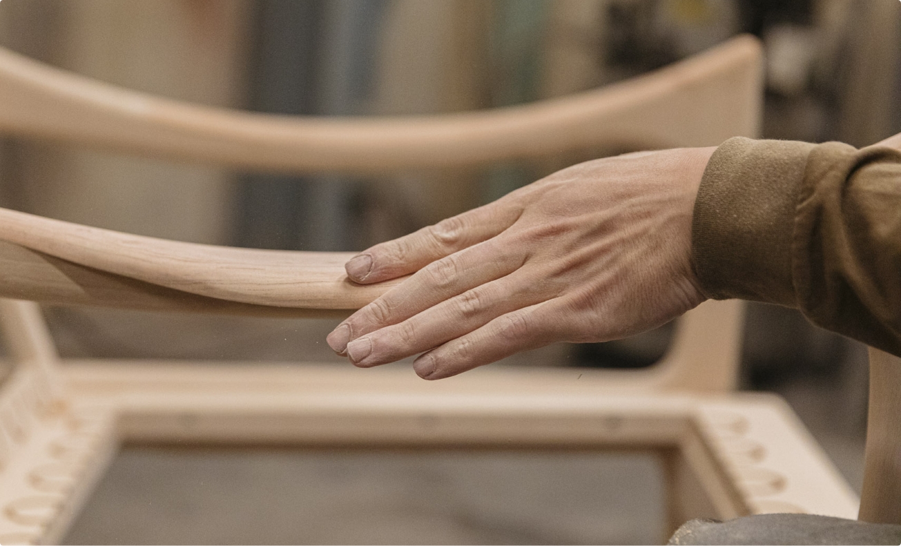 美しくなめらかなライン、すべすべに磨き上げた無垢材の手ざわり、