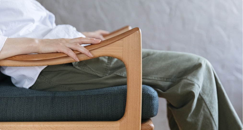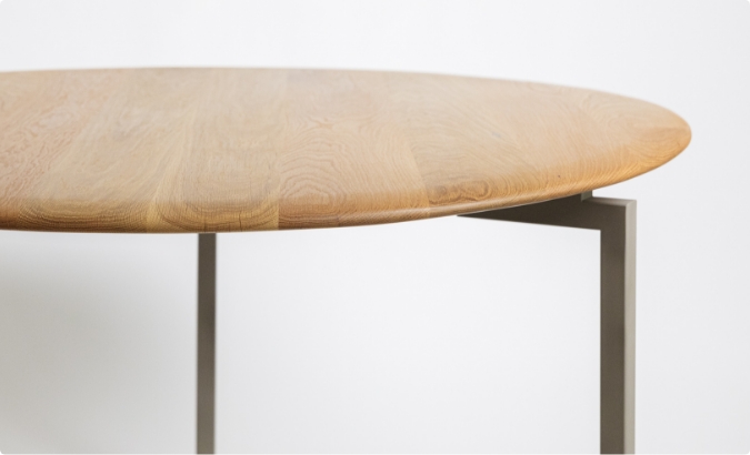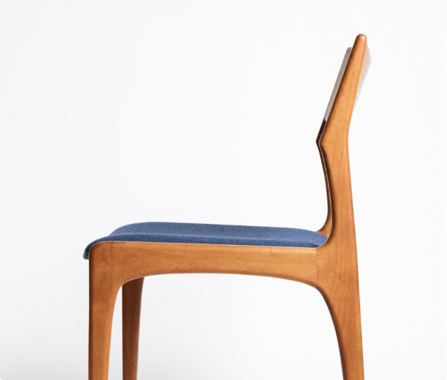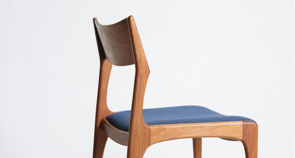 全体的に細身のラインでシャープさを出しつつも、ゆるやかなカーブやまるみで、オイル仕上げの無垢材の手ざわりを存分にお楽しみいただけます。