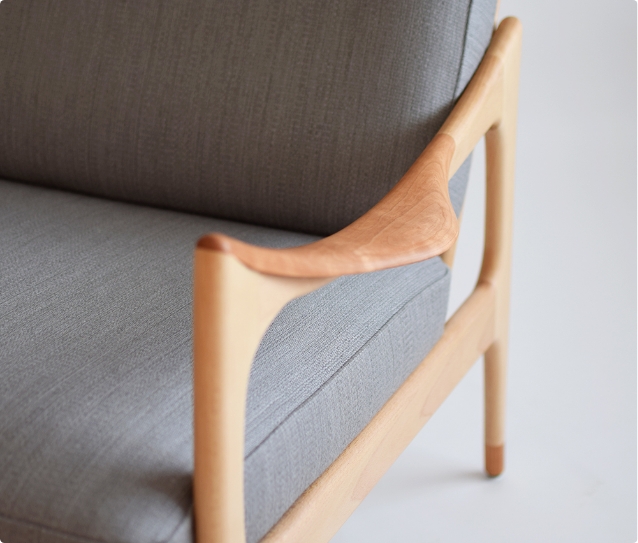 北欧家具を知り尽くした岡野がデザインする家具は、どれもシンプルで美しく機能的です。特にディティールの美しさは、ミリ単位でのこだわりも。