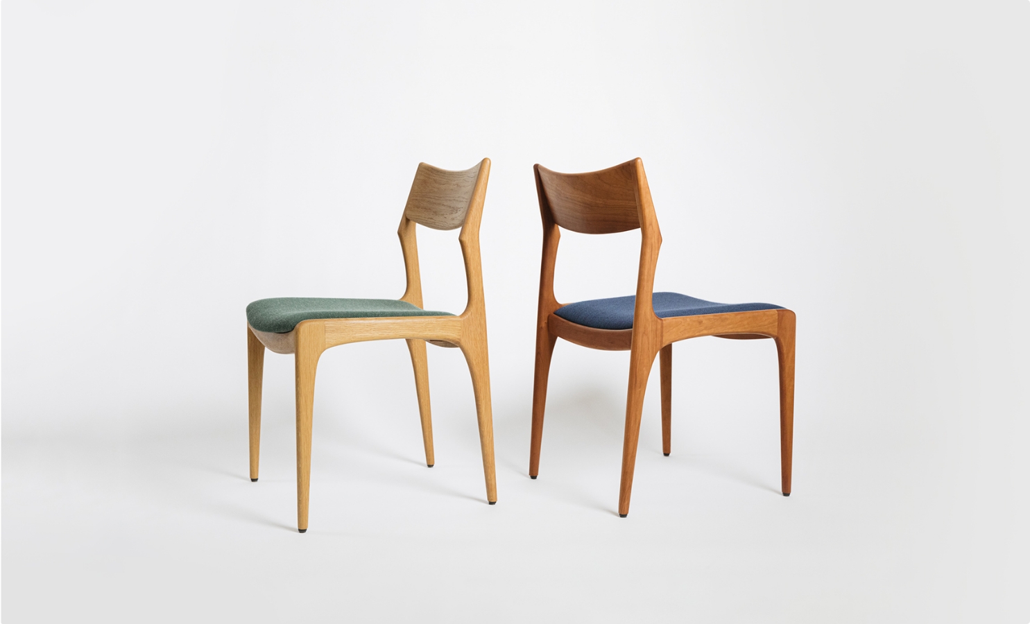 シャープな脚、大胆なカーブを描く座面、鎖骨のような角。