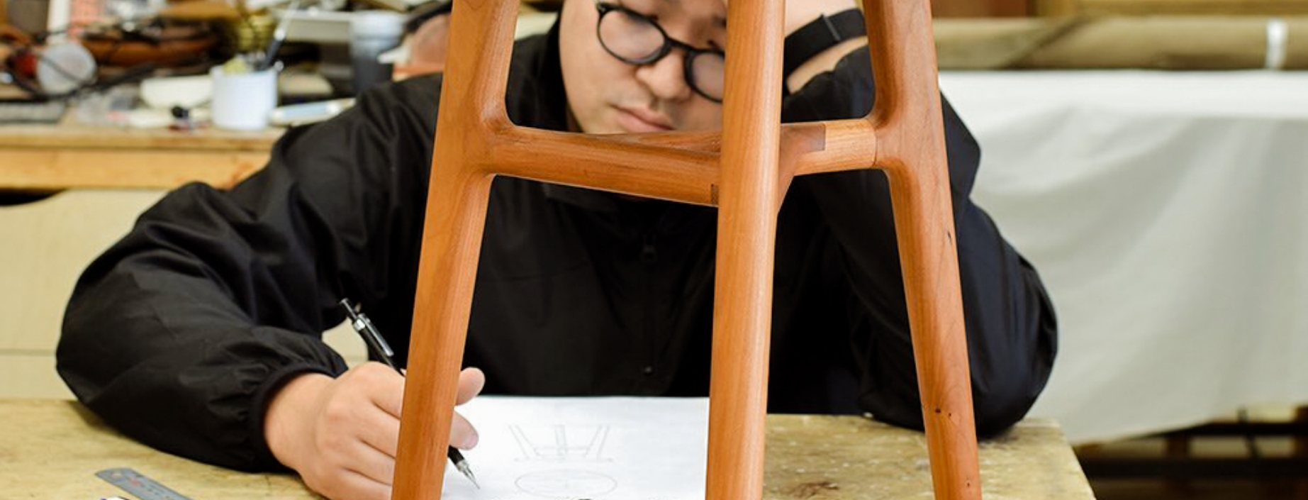 オリジナル家具やオーダー家具のデザインを担当するのは、デザイナー兼職人の岡野裕一。かつて美大で洋画を専攻していた岡野は、長時間椅子に座って絵を描くうちに座り心地の良い椅子を探し求めるようになり、気付けば自宅は北欧の名作椅子だらけに。