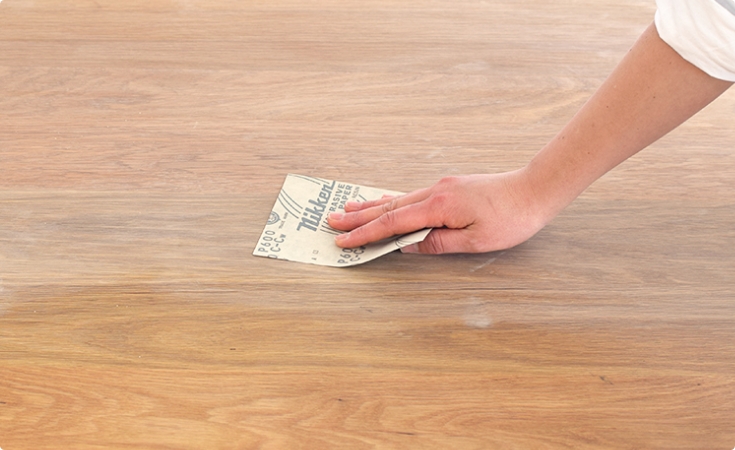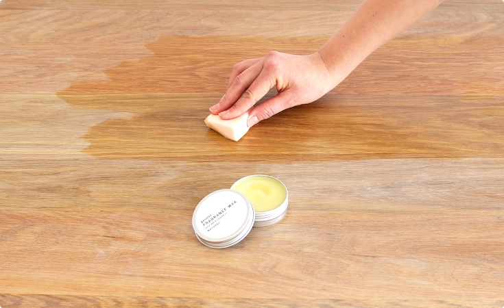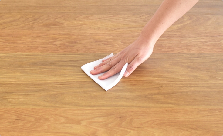 きれいな乾いた布で余分なワックスを木目に沿ってしっかり拭き取ります。