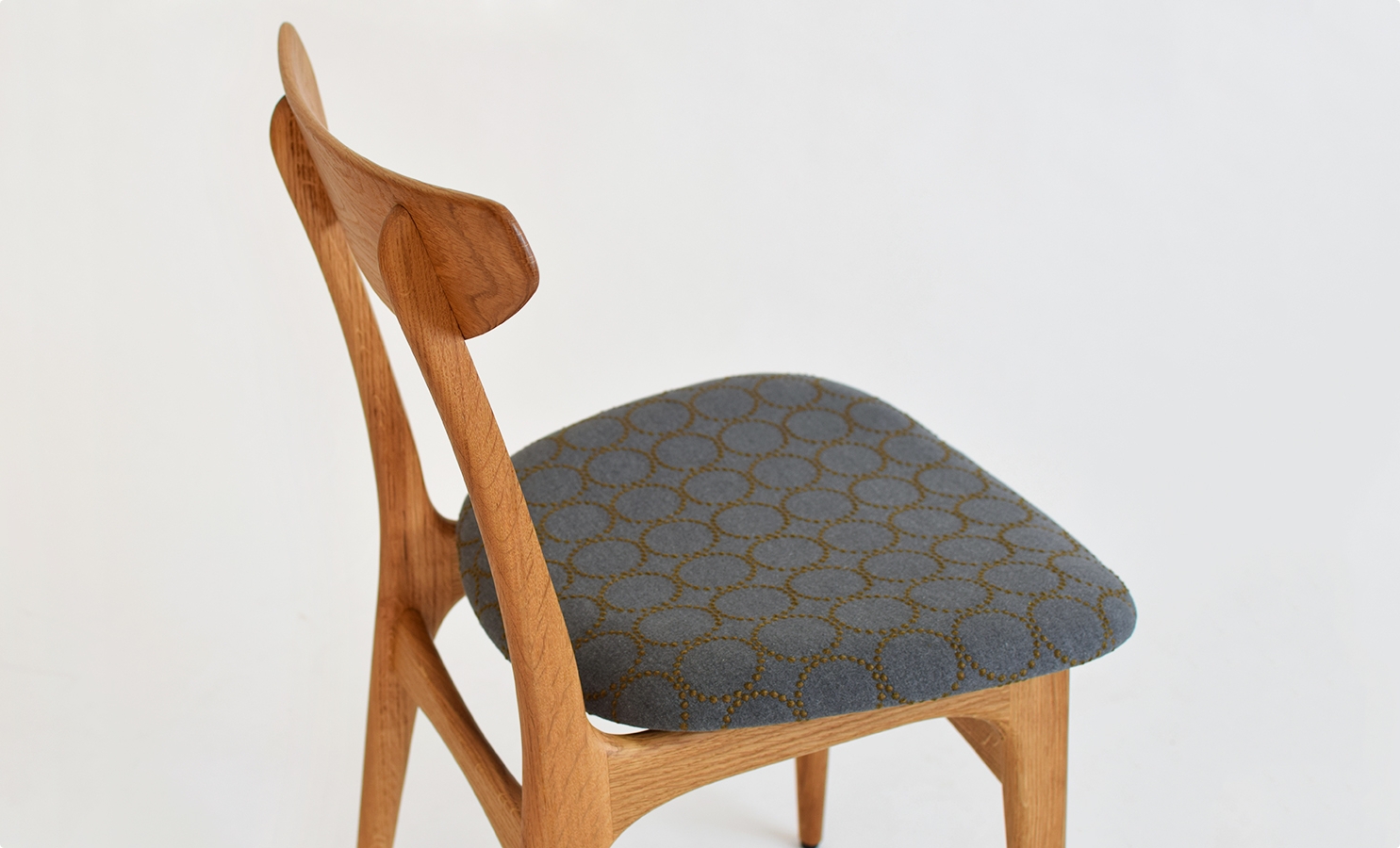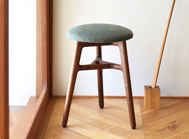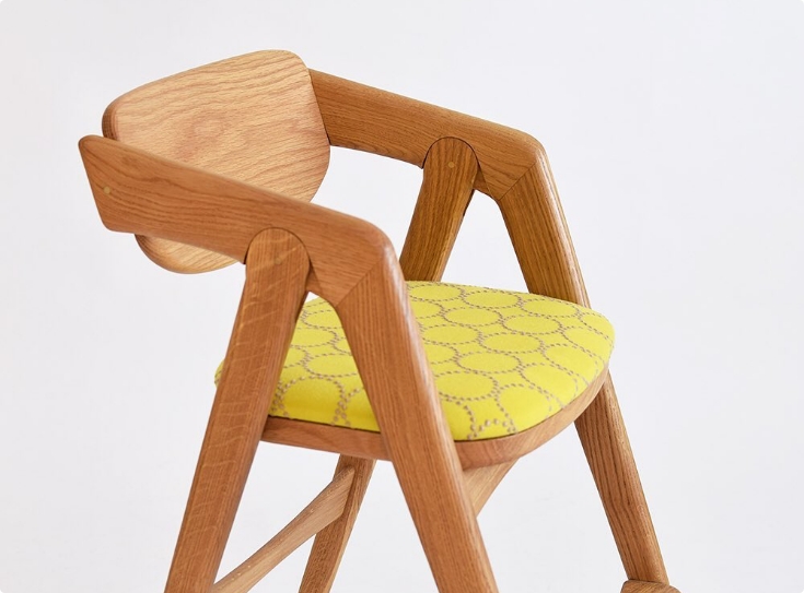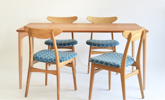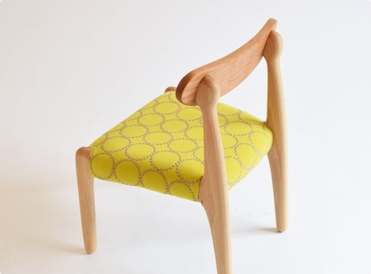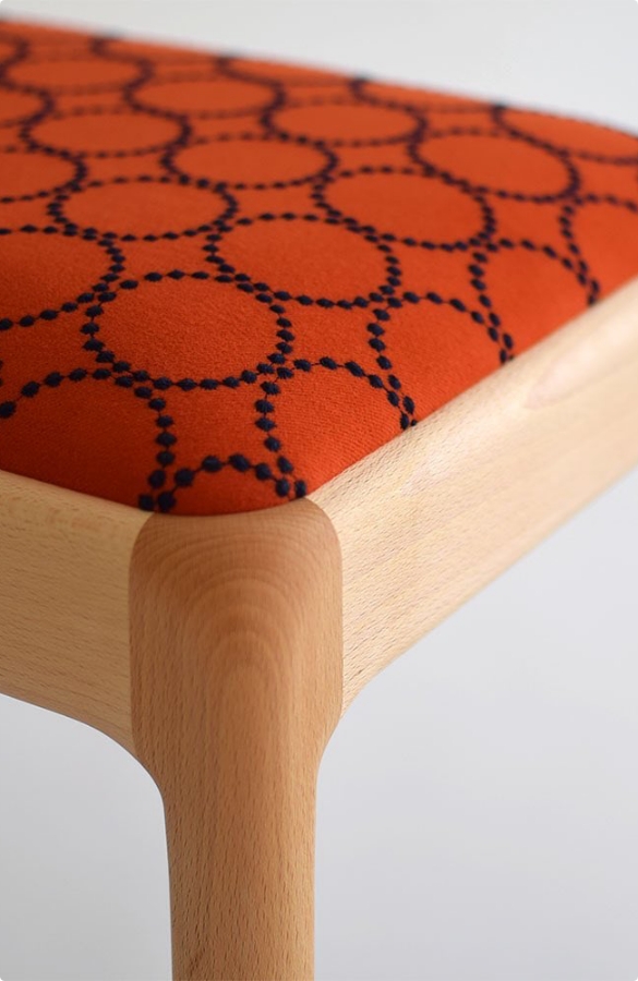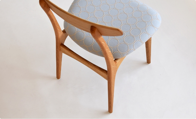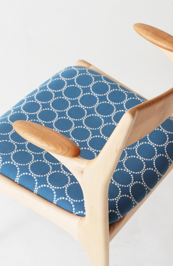 次第に深みを増していく木肌とともに、少しずつ擦り切れていくファブリックを楽しめる椅子。