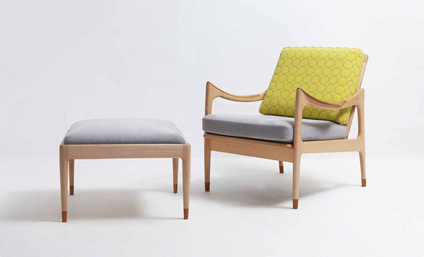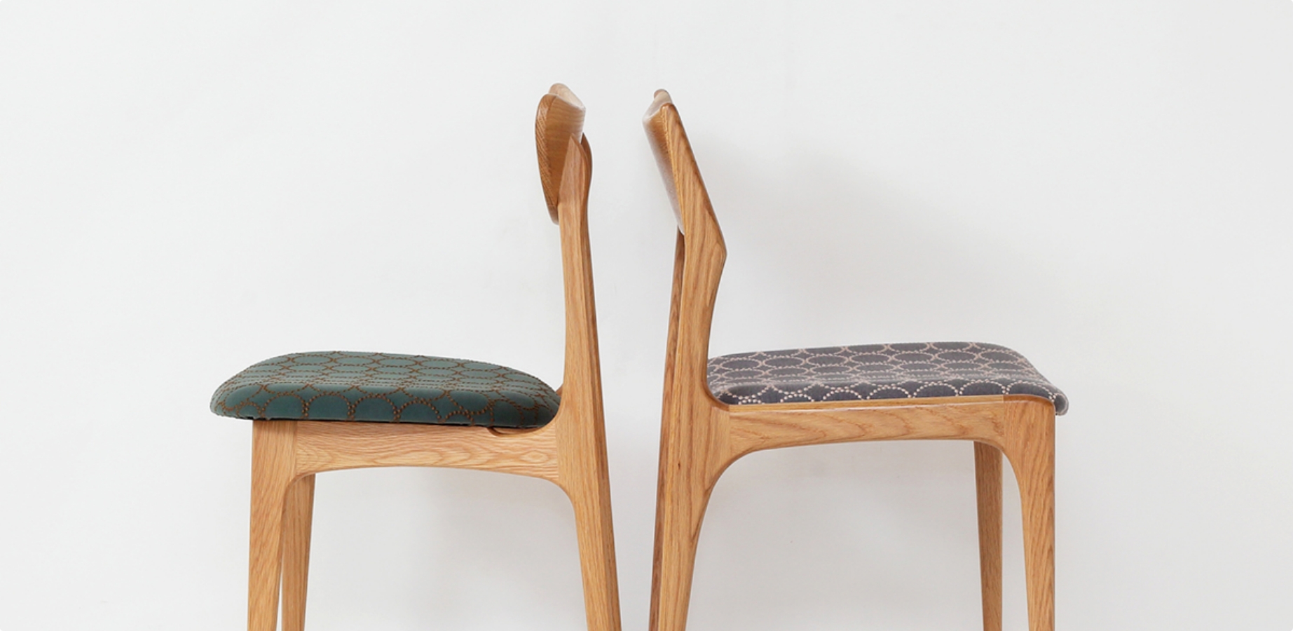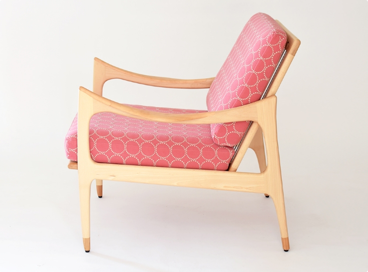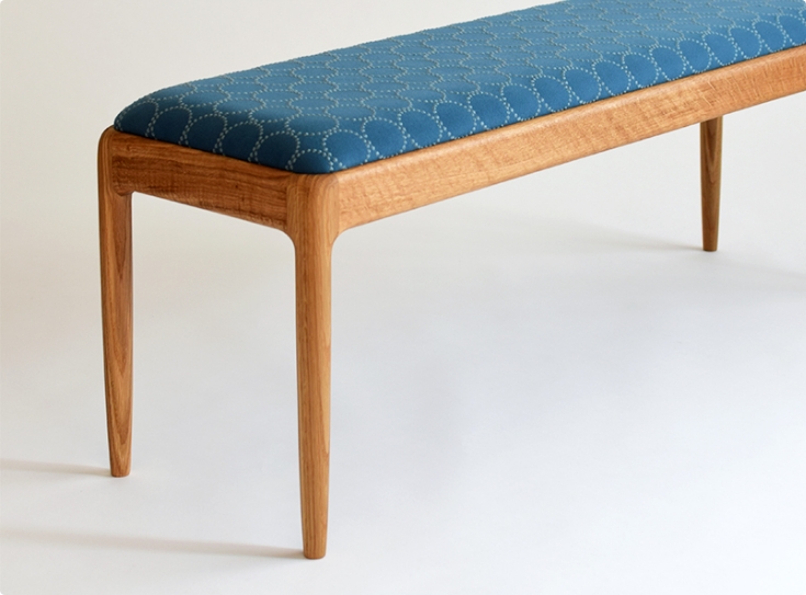 次第に深みを増していく木肌とともに、少しずつ擦り切れていくファブリックを楽しめる椅子。