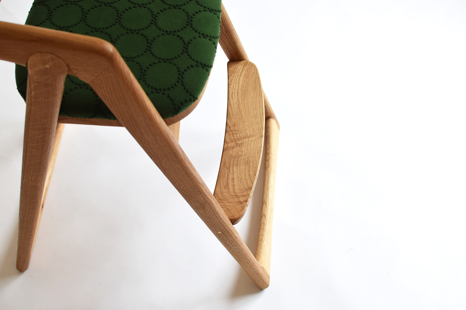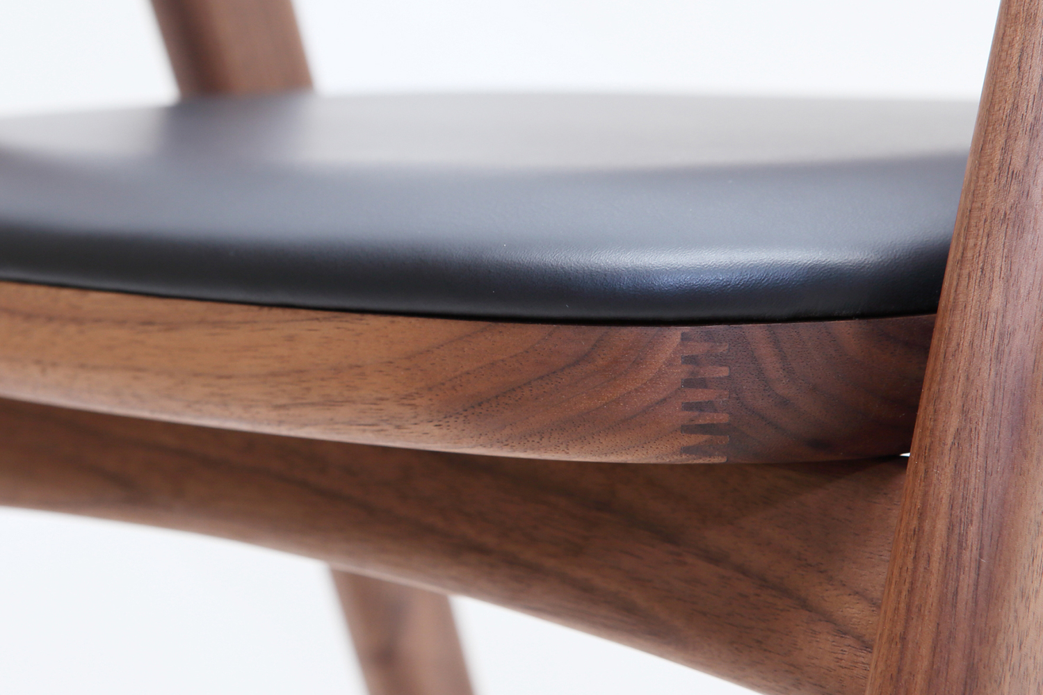 無垢材の表情豊かな木目、緩急をつけたフレームのライン、すべすべに磨かれた木肌。