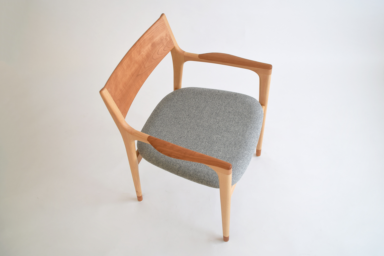 時を経て深い飴色へと変化する、なめらかな木肌が特徴のチェリー材とのコントラストが美しいコンビネーションです。