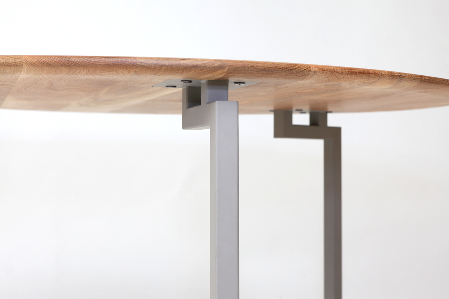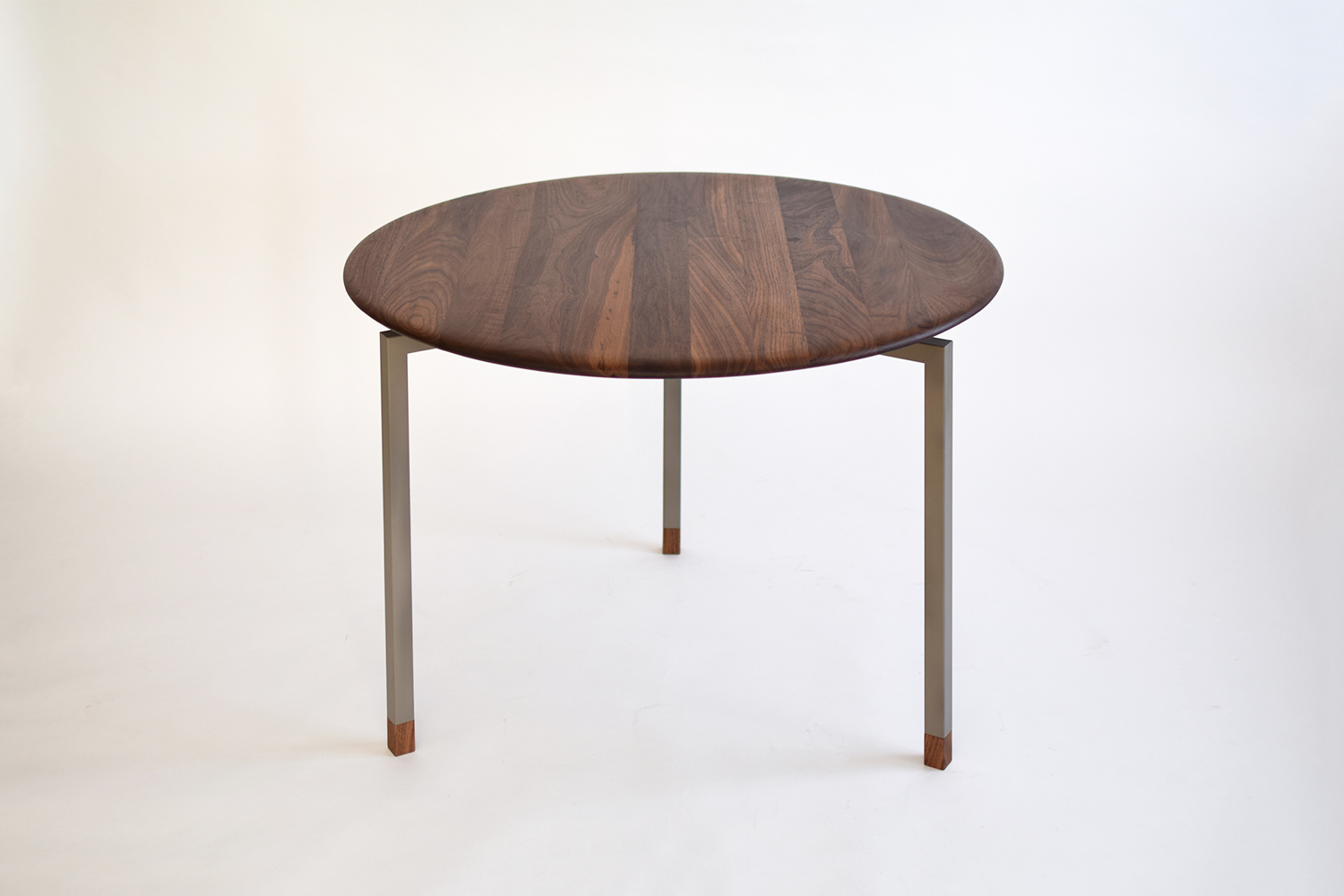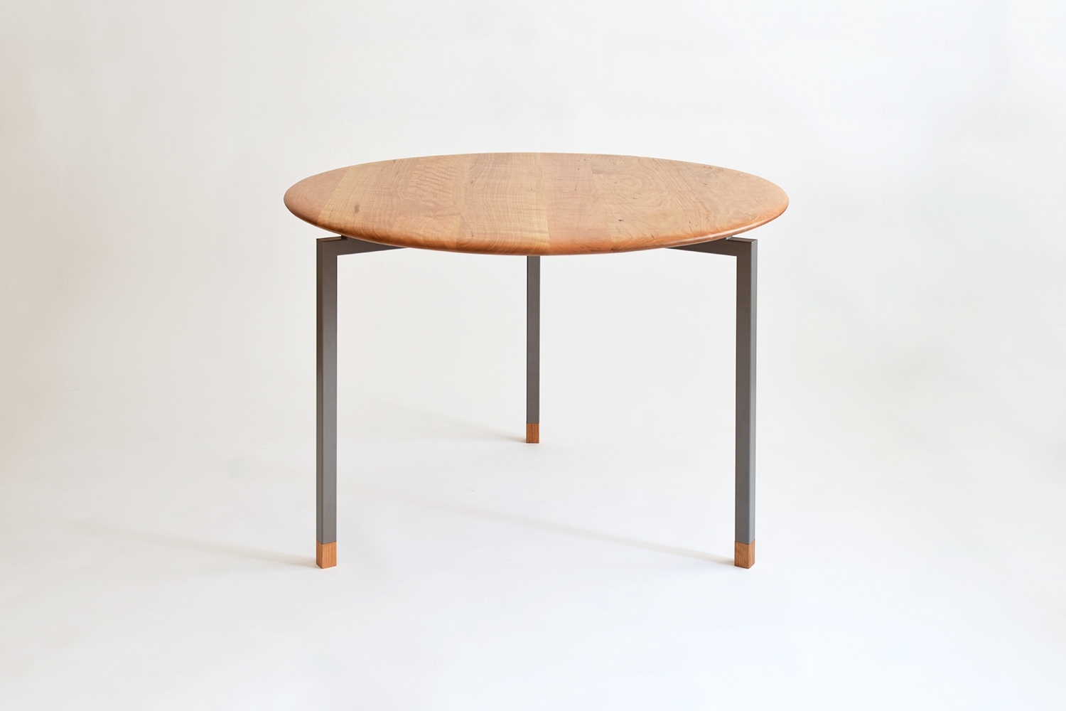 アイアンの質感が冷たくなりすぎないように、脚先には天板と同樹種の木のパーツを取り付けています。