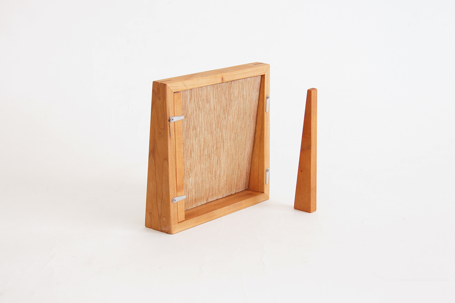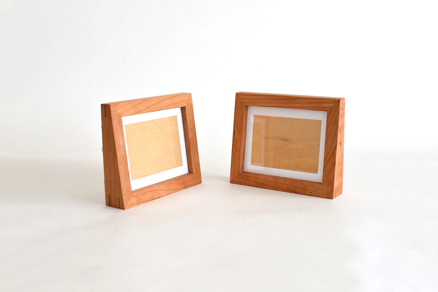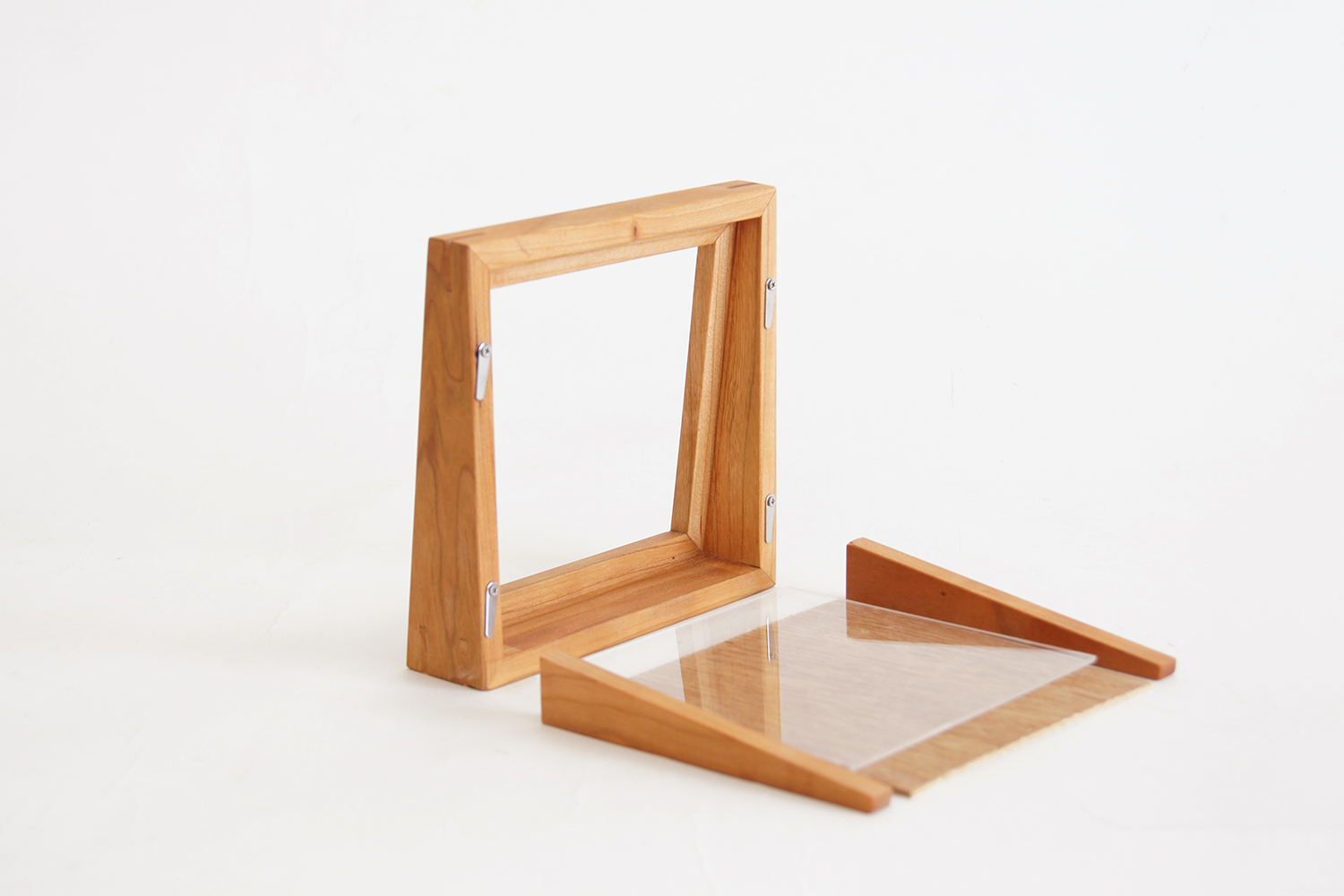 一番のこだわりは、背面のスタンド無しで自立しつつ、前面の傾斜に平行して写真を飾れること。