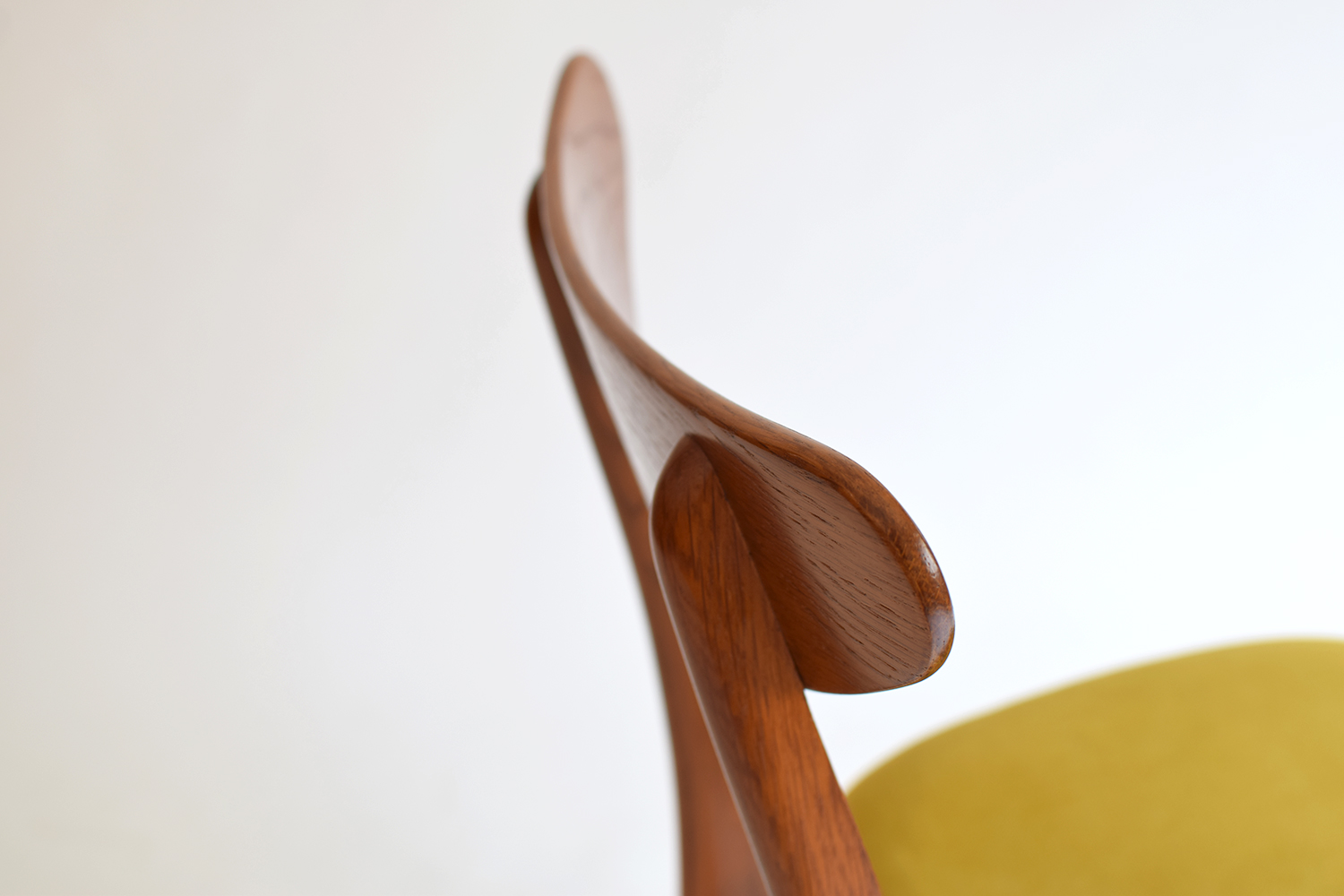スタンダードなカフェチェアのデザインをもとに、大柄な方でもゆったりとお掛けいただけるようにしました。