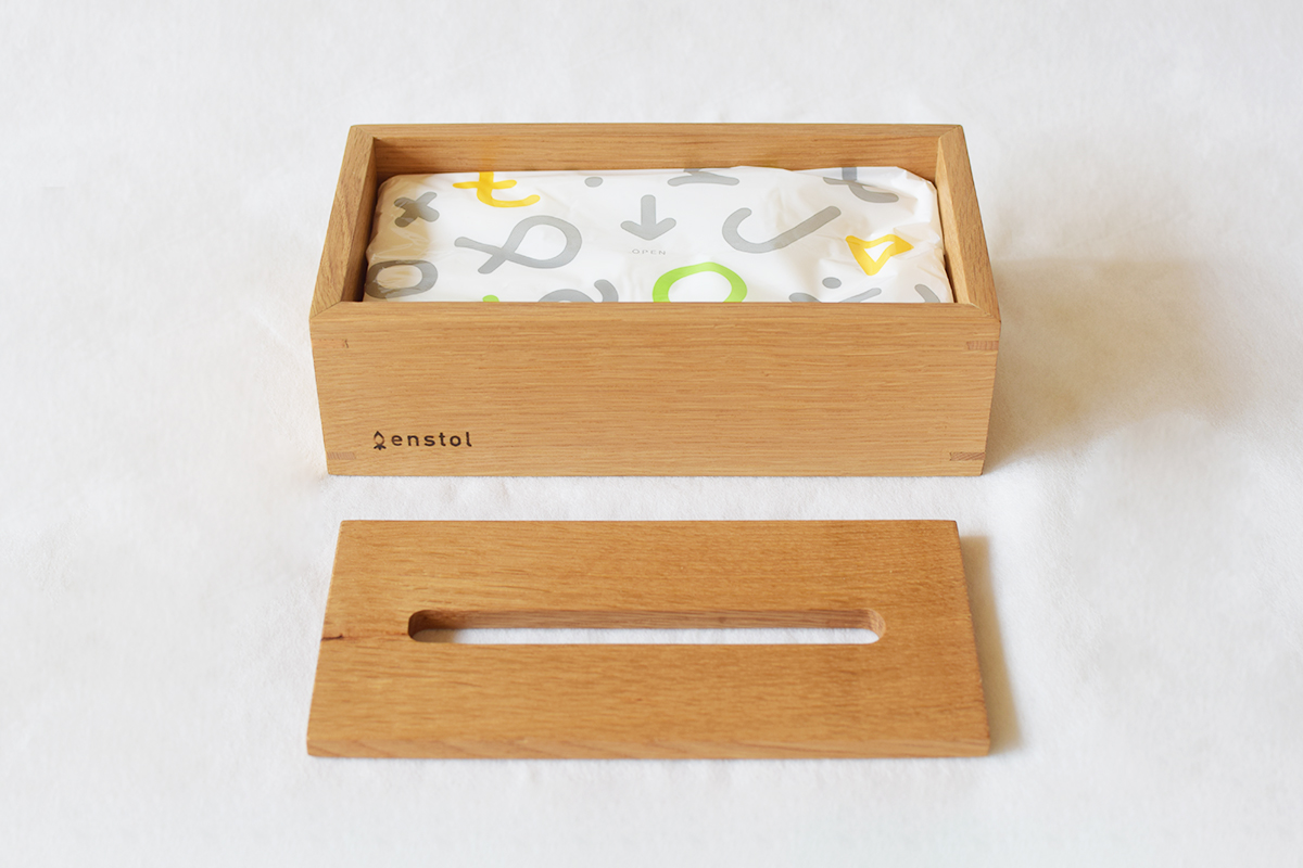 無垢材の上質さが引き立つ、シンプルなデザインのティッシュケース