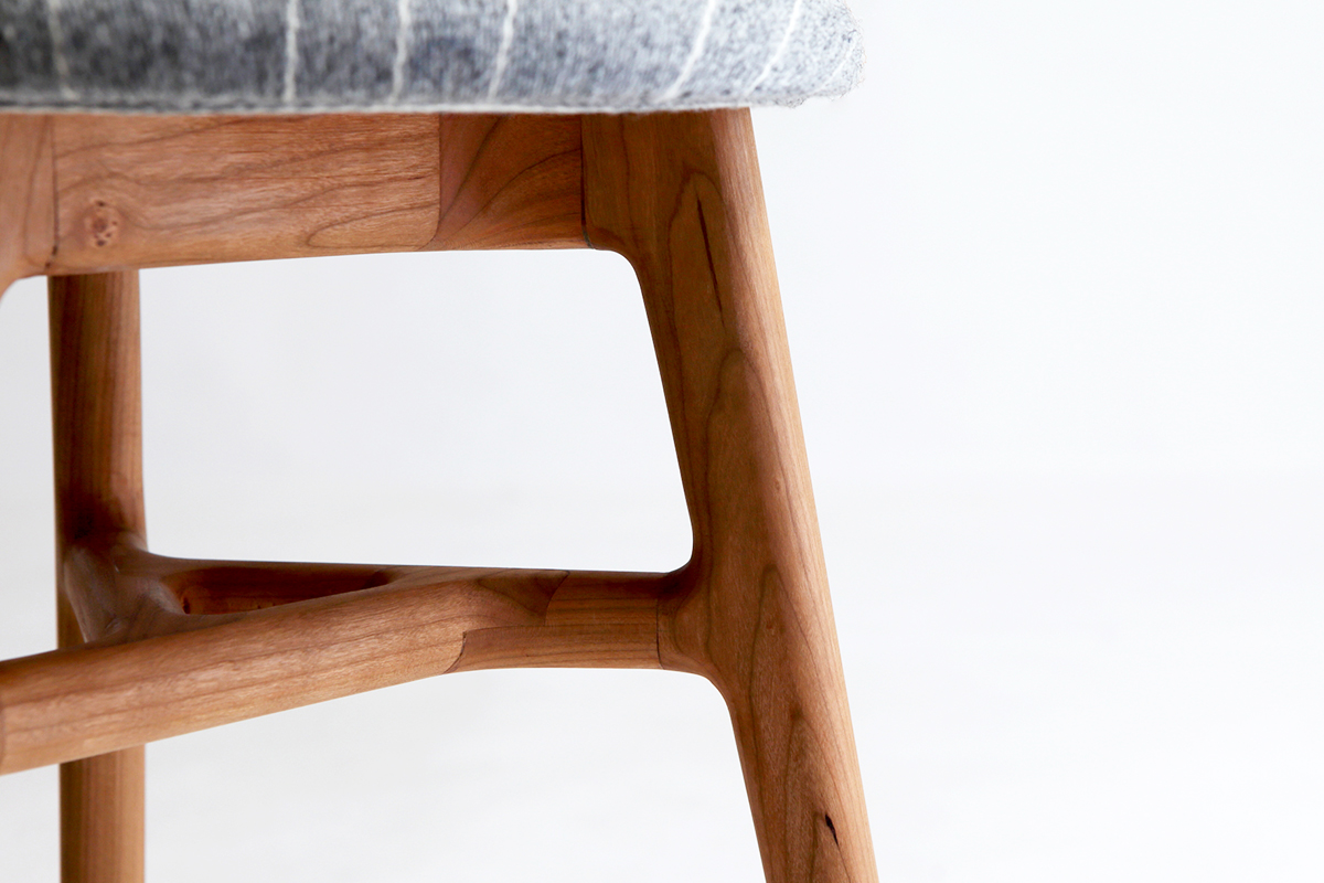 一枚の無垢材を分かち合い生まれる一脚の椅子とスツールは、まるで仲の良いきょうだいのようです。