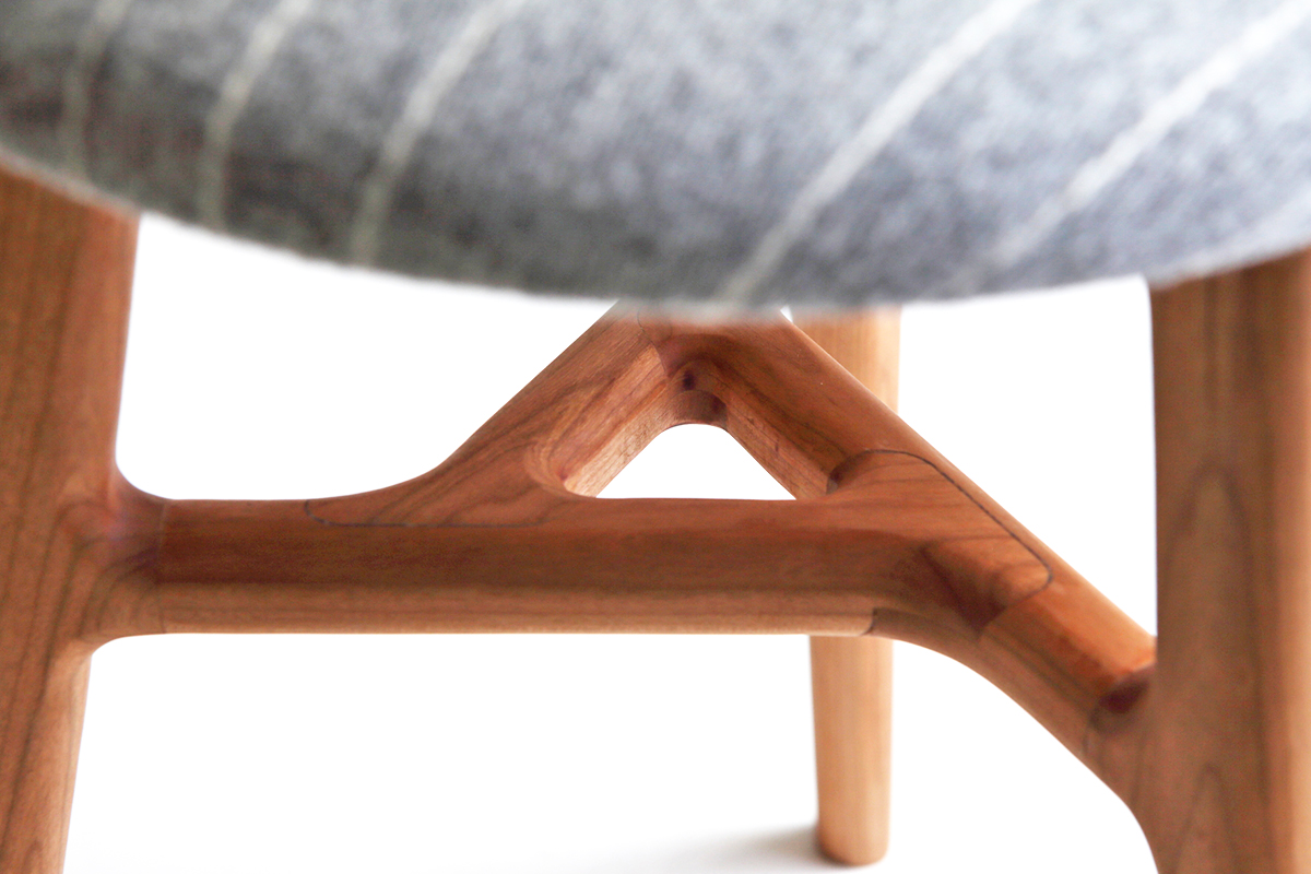 試行錯誤しながら「この形なら余った部分の木を使えるかもしれない」と編み出したのが、3本脚スツールの「貫」部分の、独特の形状でした。