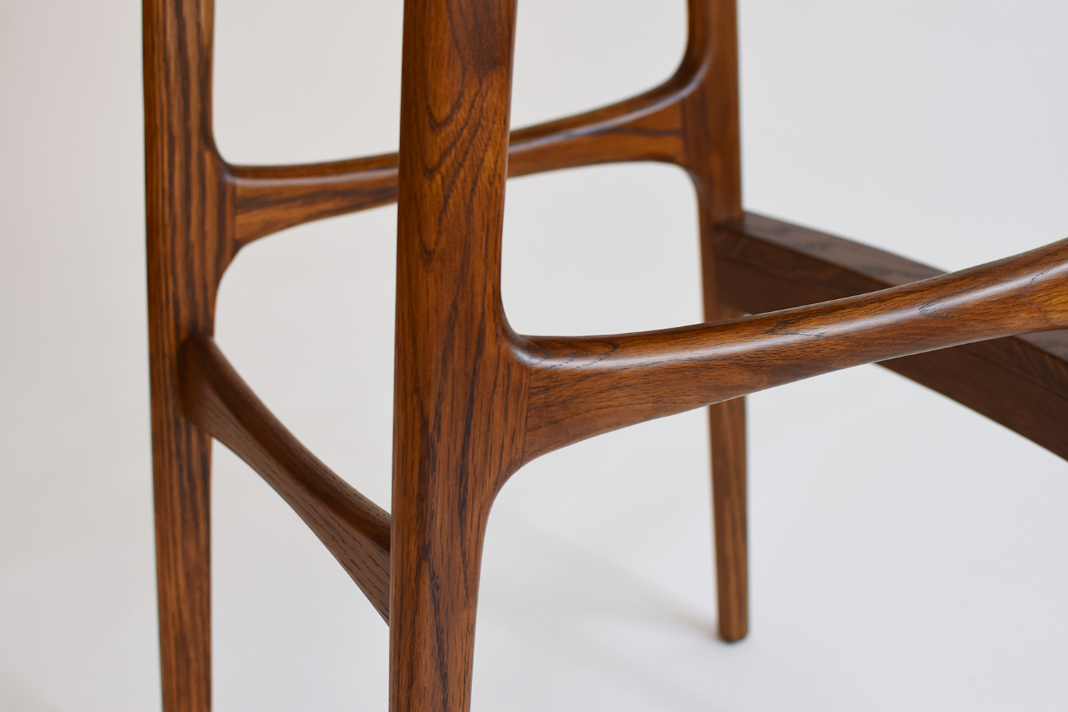 スレンダーなフレームのラインで、重たい雰囲気になりがちな木製カウンターチェアもすっきりと洗練された印象に。