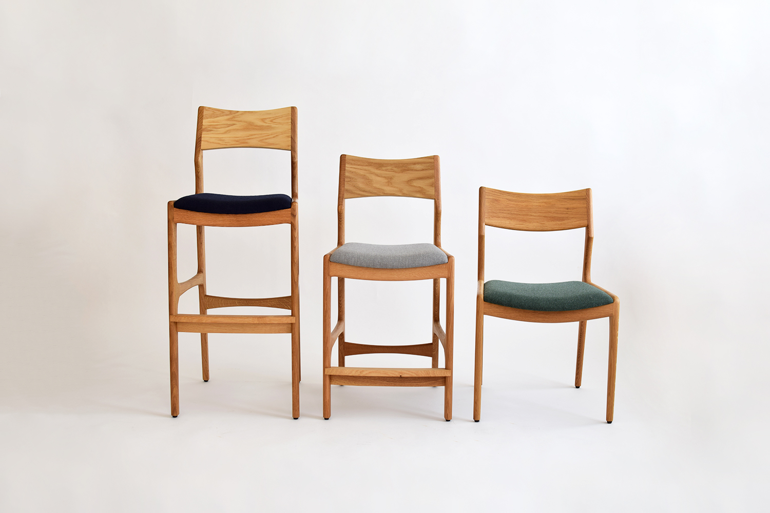ご新居のキッチンカウンター用に、カウンターチェアを納品させていただきました。フレームはオーク無垢材・オイル仕上げ。座面の張地はオリーブとビリジアンの2色をセレクトされました。すらりとした佇まいのカウンターチェアが、センス […]