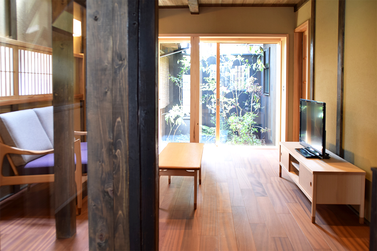 奥には日本庭園を望むことができ、京町家の暮らしを彩ってくれます。