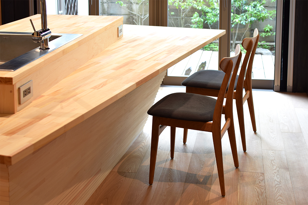 キッチンカウンターにあわせてご注文いただいたダイニングチェアはpint-F。