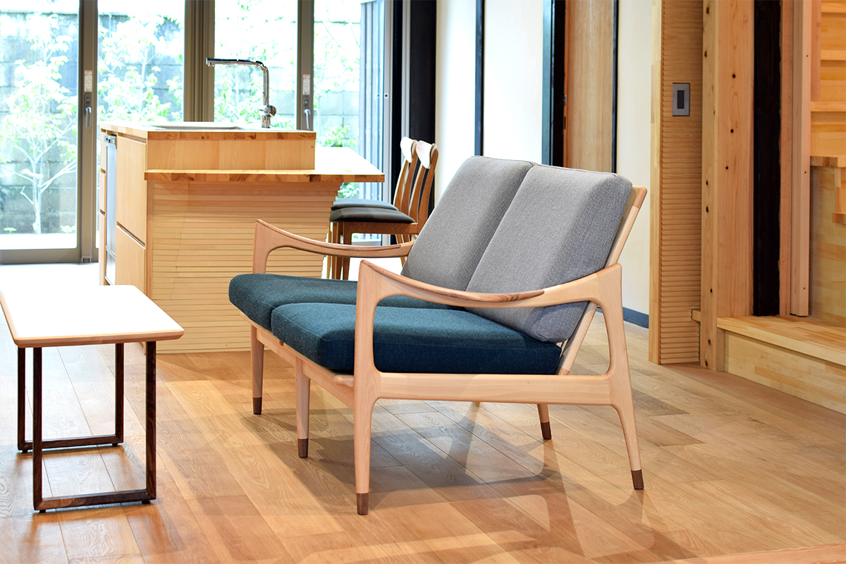 ソファテーブルとともに、樹種はビーチ×ウォールナットで揃えられました。