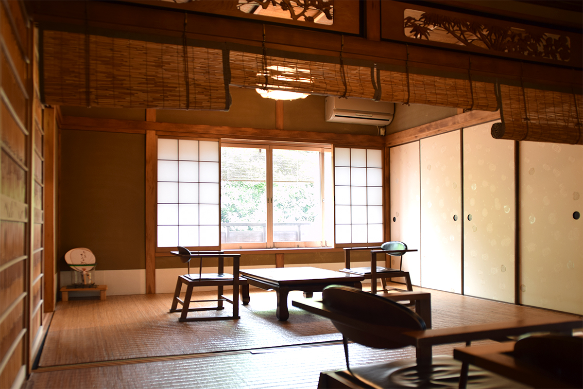 畳の上には網代(あじろ)が敷かれ、琵琶湖の葭が使われた夏障子から注ぐ初夏の日差しは木漏れ日のよう。