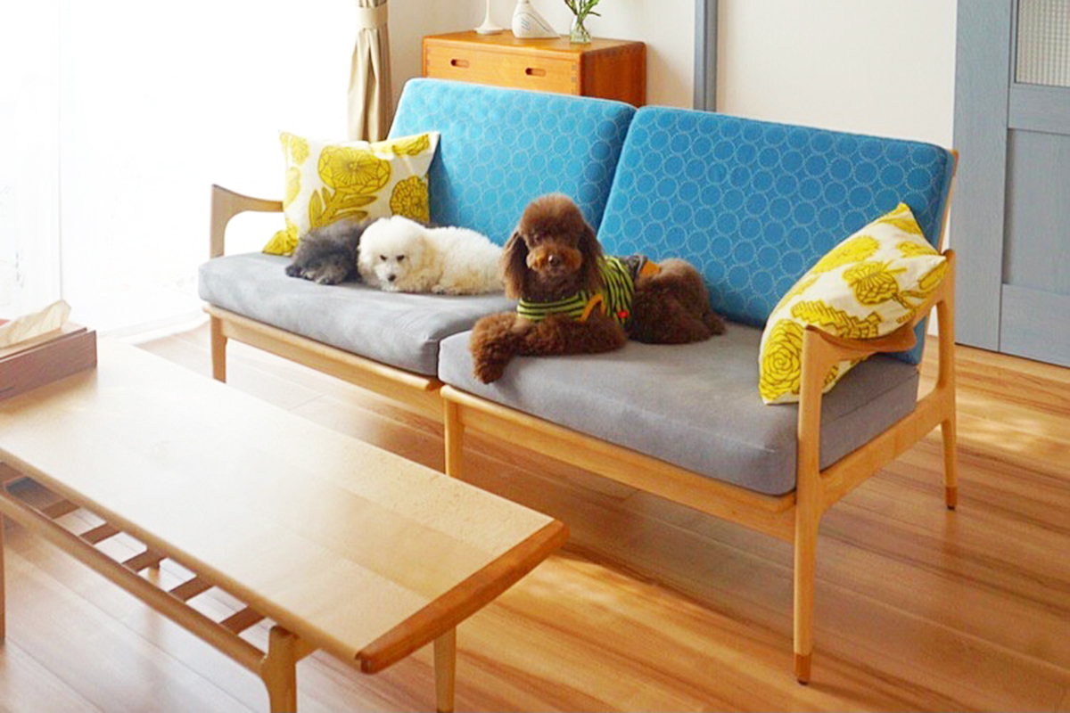 「オーダーさせて頂いた家具でワンコもくつろいでいます!」とのメールとともに、お写真をたくさんいただきました。