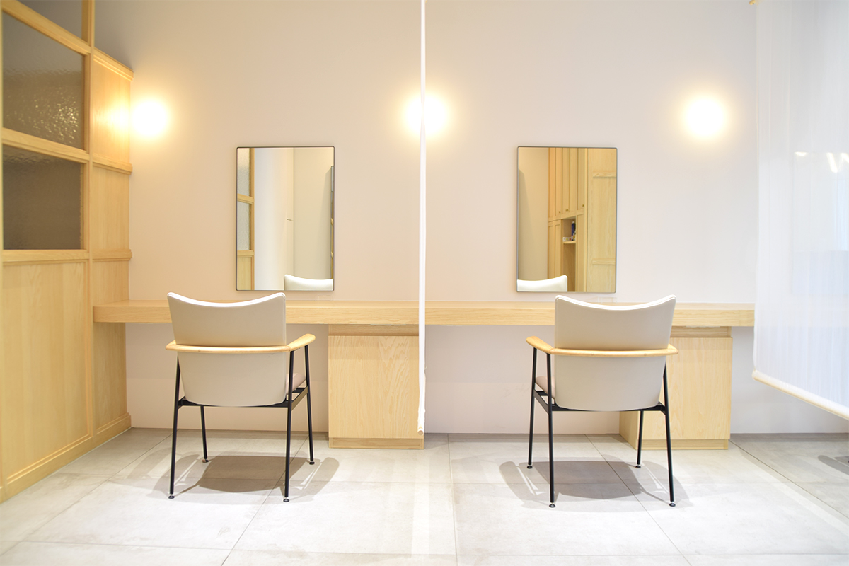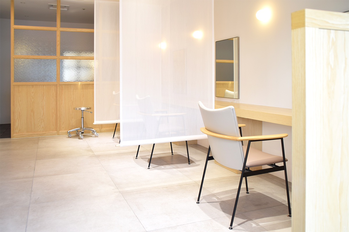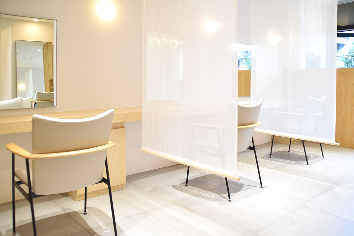 カラーはお店の雰囲気にあわせて、やわらかなトーンのものをバイカラーでセレクトされました。