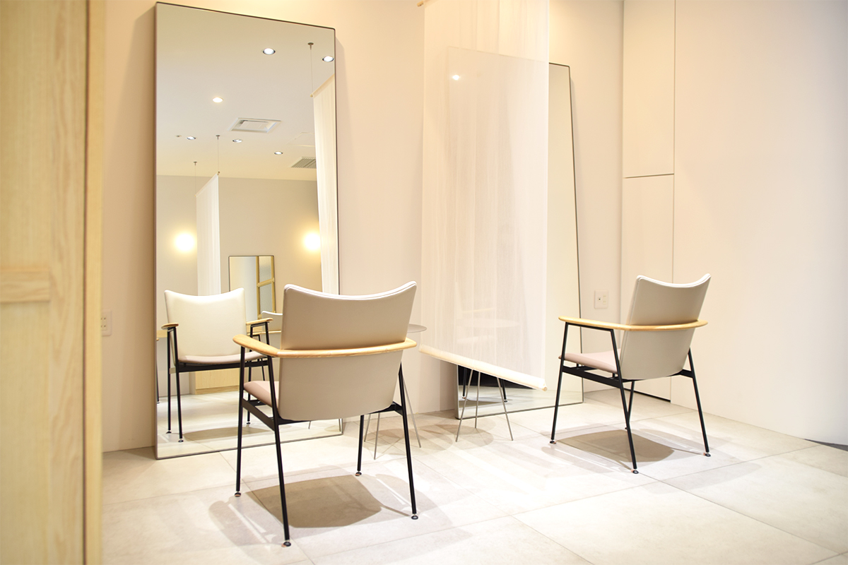 three様らしいシンプルかつミニマルな雰囲気ながら、やわらかな空気感が新鮮なthree.大手前店 様。