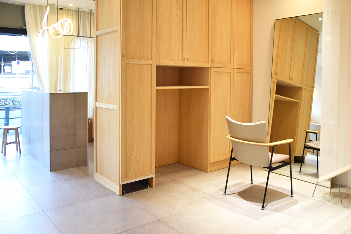 2019年に北浜にオープンされた1店舗目、2020年に同じビルの2階にオープンされた2店舗目に続き、2022年秋に大手前にオープンされた3店舗目の家具もオーダーいただきました。