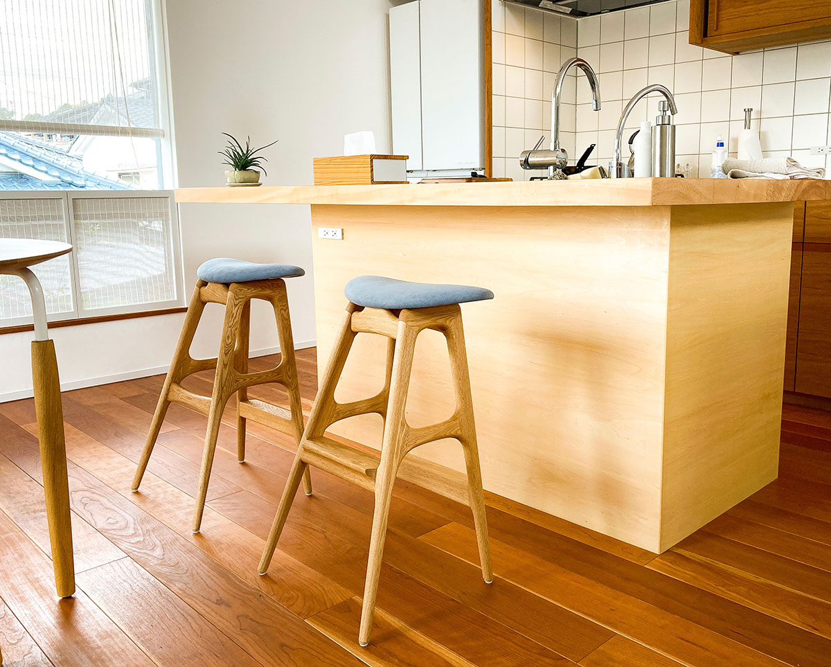 ご新居のキッチンカウンターに合わせられるスツールをお探しの際にyu-counter stoolを見つけてくださり、オンラインショップ経由でご注文いただきました。