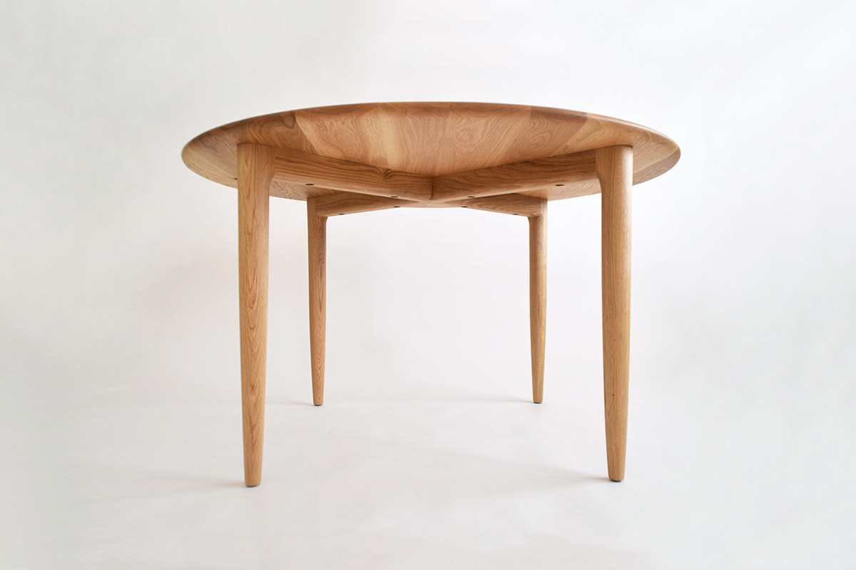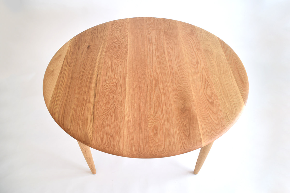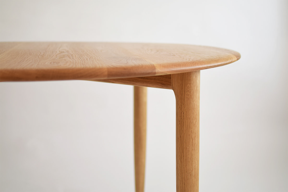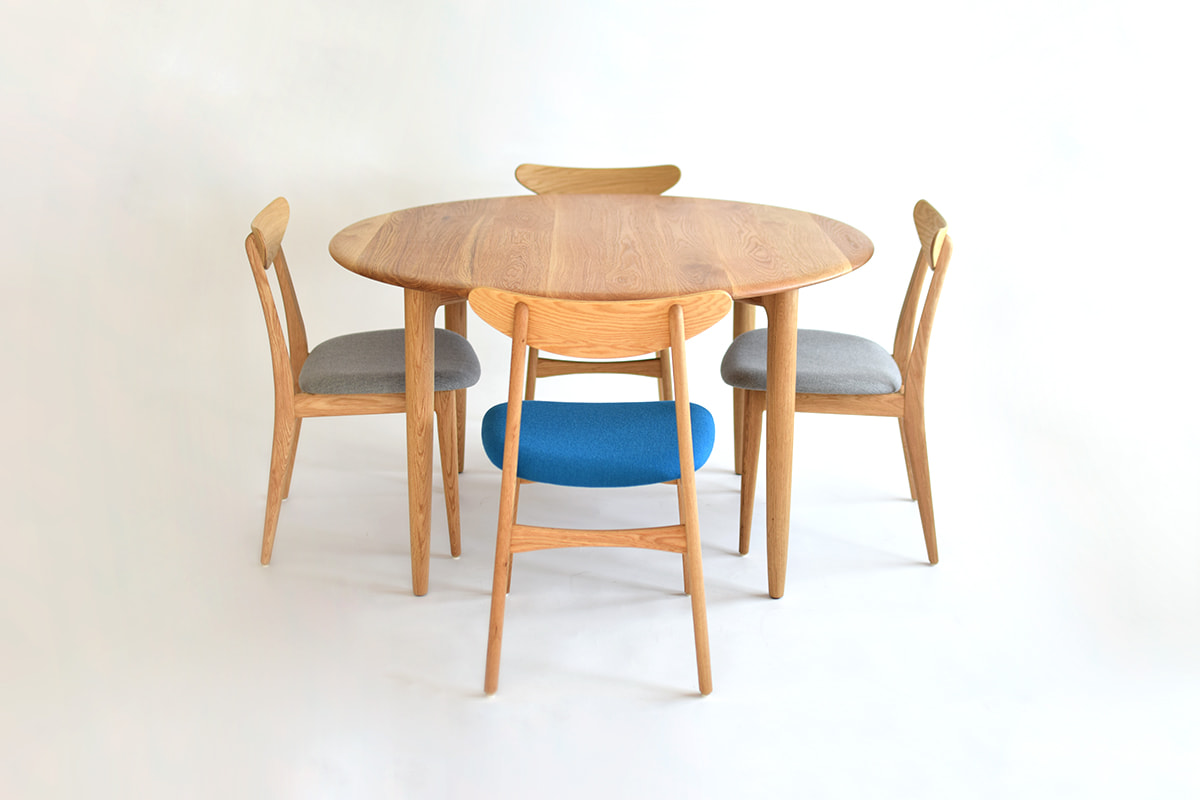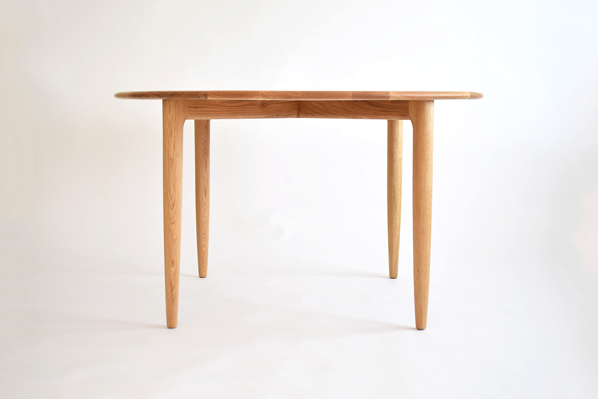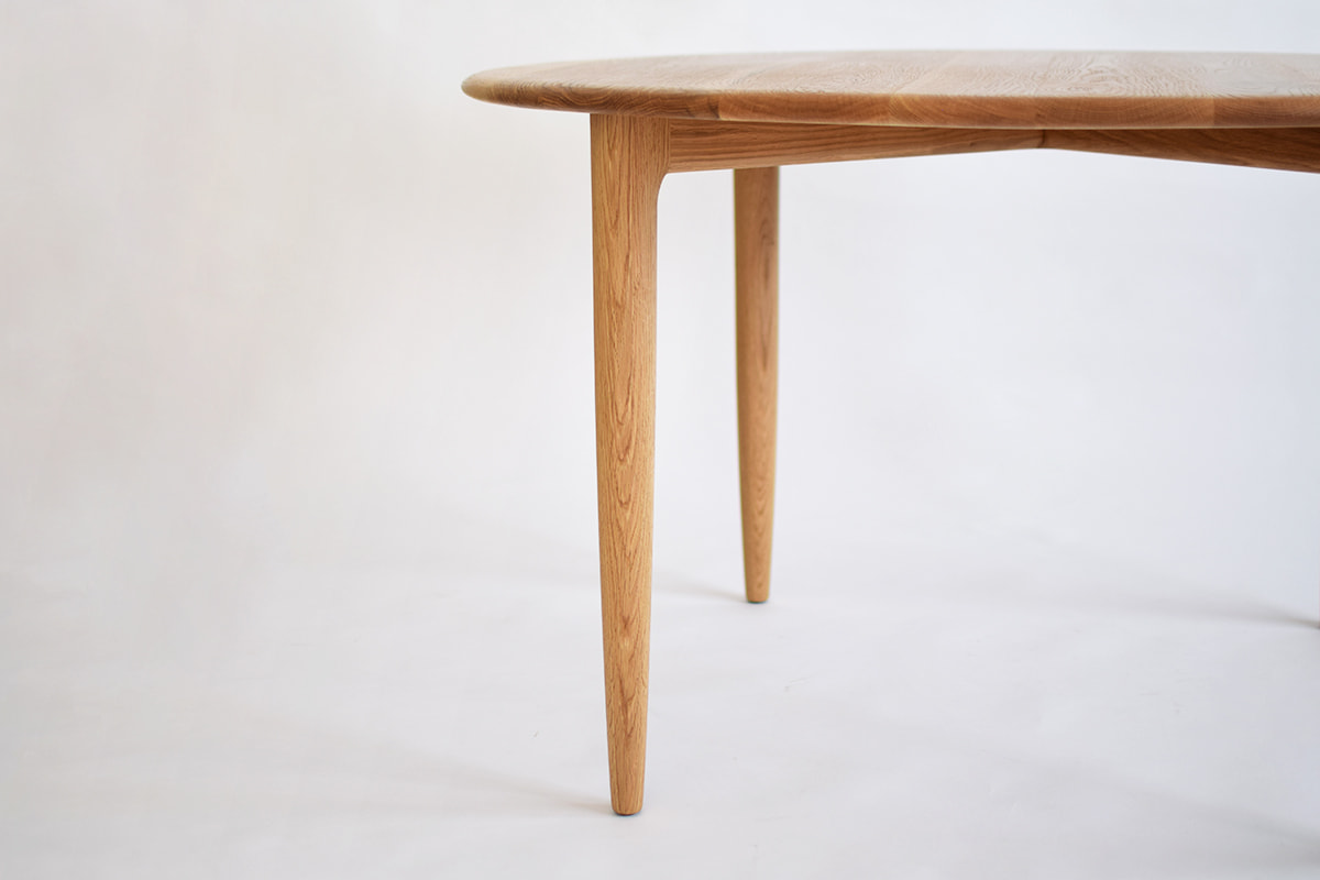 天板・脚ともにオーク無垢材を使用した円形ダイニングテーブル。