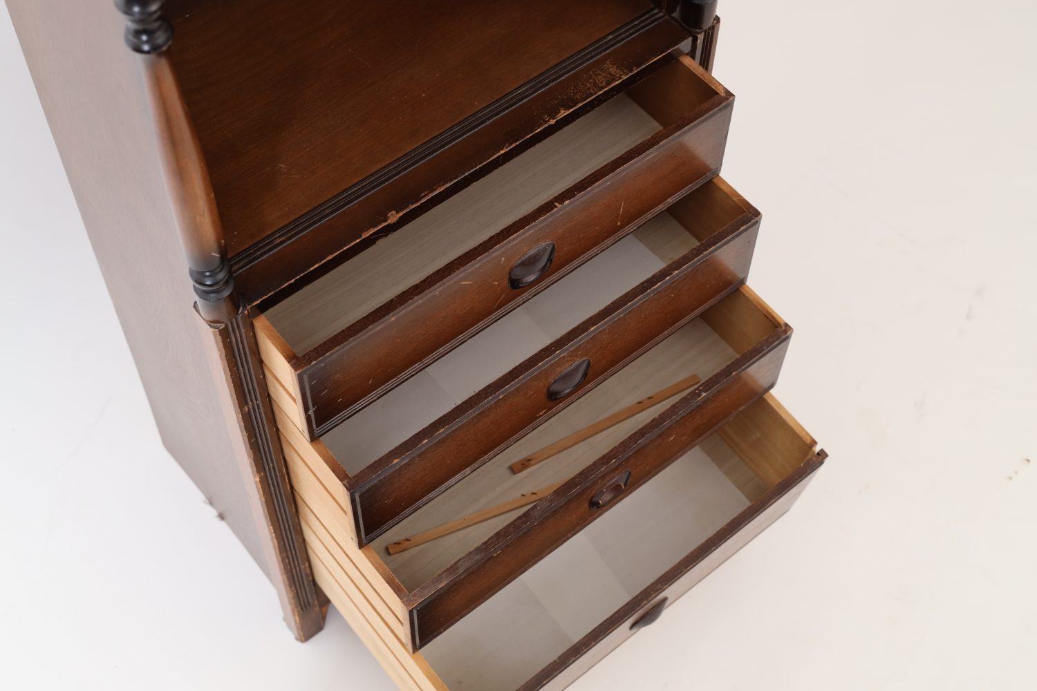 使用感を残しつつも全体的な色ハゲを補色し、スムーズに引き出しの出し入れができるように調整。取っ手も完全復活しました。