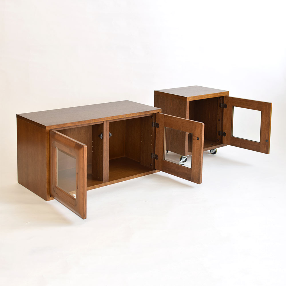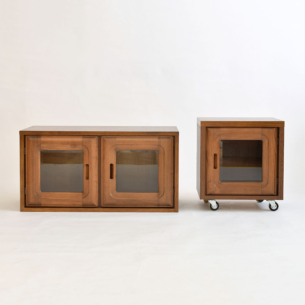 テレビボード(左)とキャスター付き収納(右)にリメイクしました。