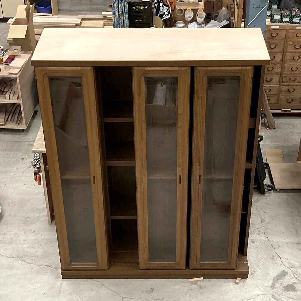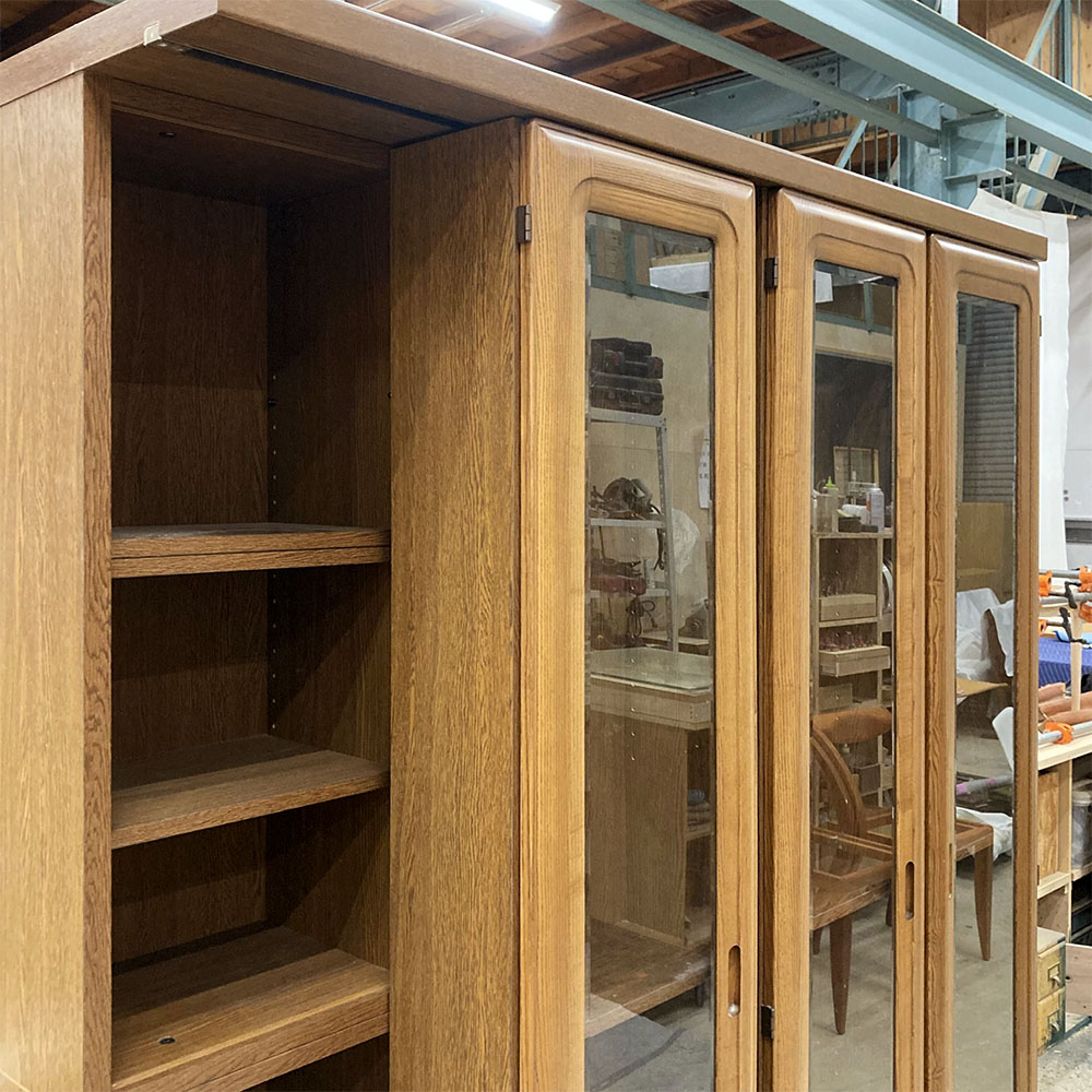 ガラス付き扉も再利用し、ウレタン着色で仕上げました。
