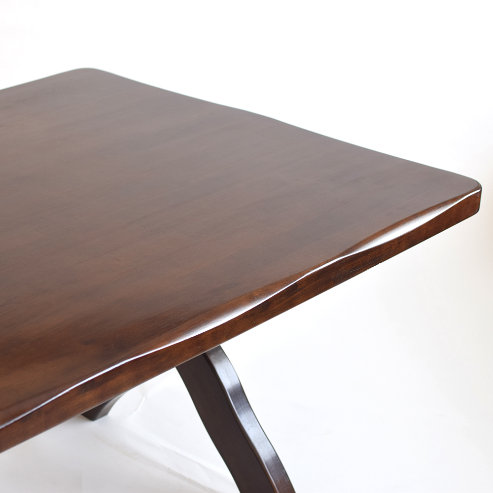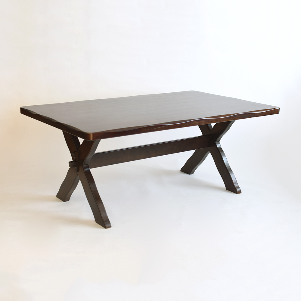 艶のあるダークブラウンの塗装が施され、どっしりとした印象のテーブルです。