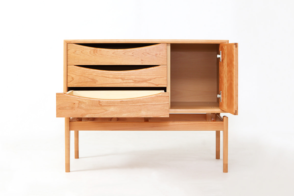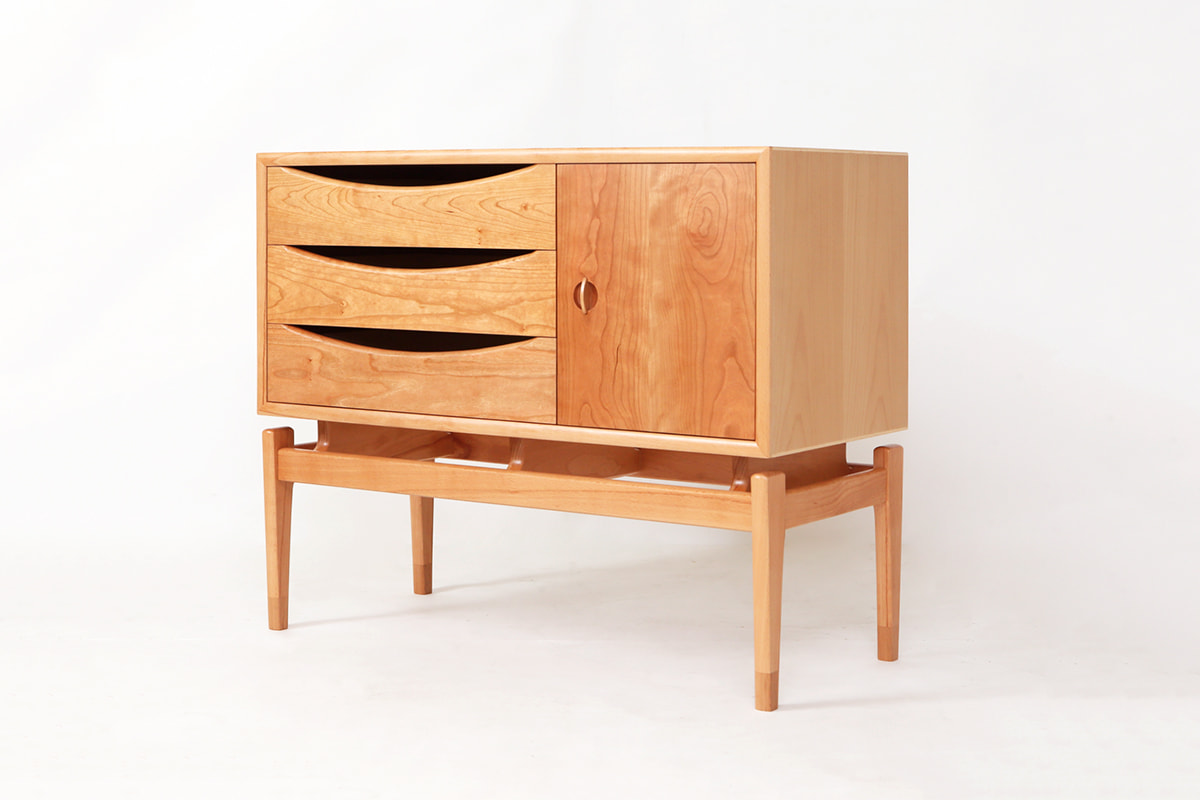 works - 家具の製作/修理・リメイク事例 一覧へ オーダーメイド家具 ビーチ×チェリーのキャビネット enstolのデザイナー・岡野がお客さまのリクエストをお聞きしながらデザインした、ビーチ材×チェリー材のキャビネット。北欧のビンテージ家具に造詣が深いお客さまのお住まいに合う、上質な一台が完成しました。 close