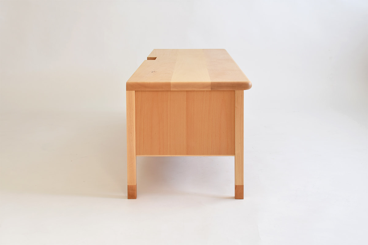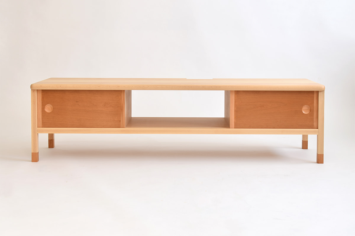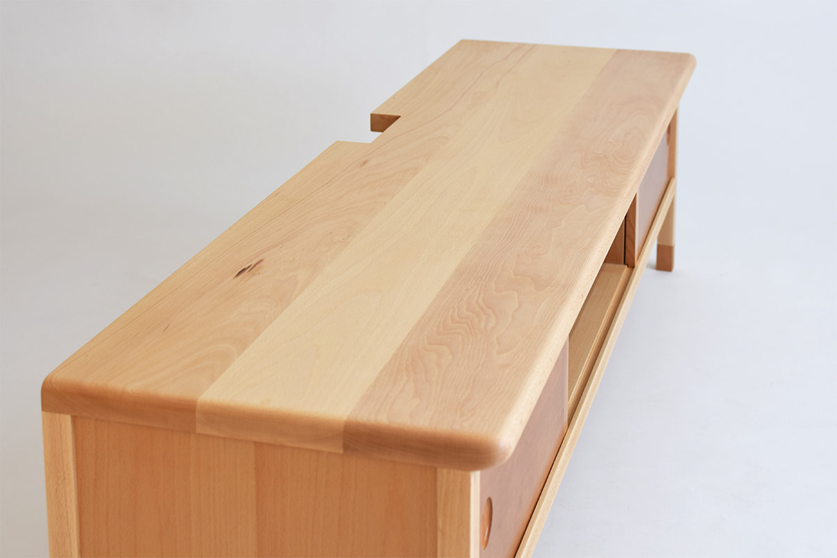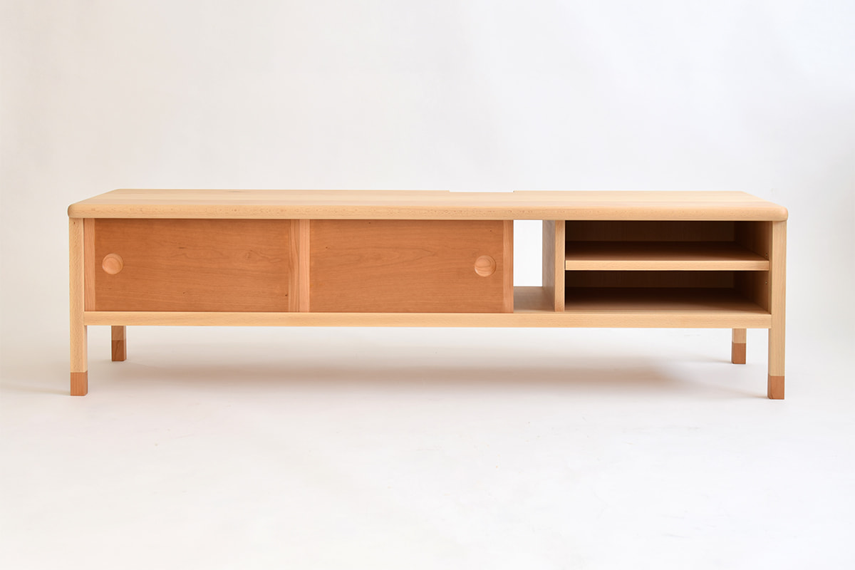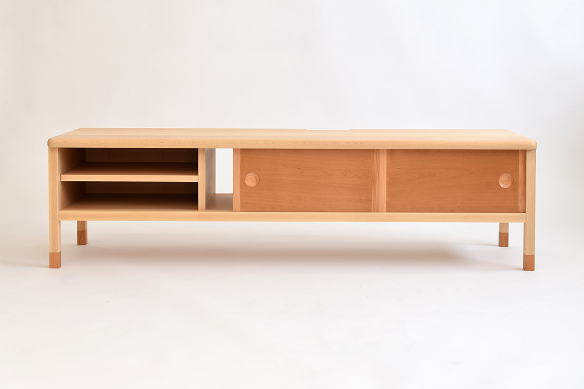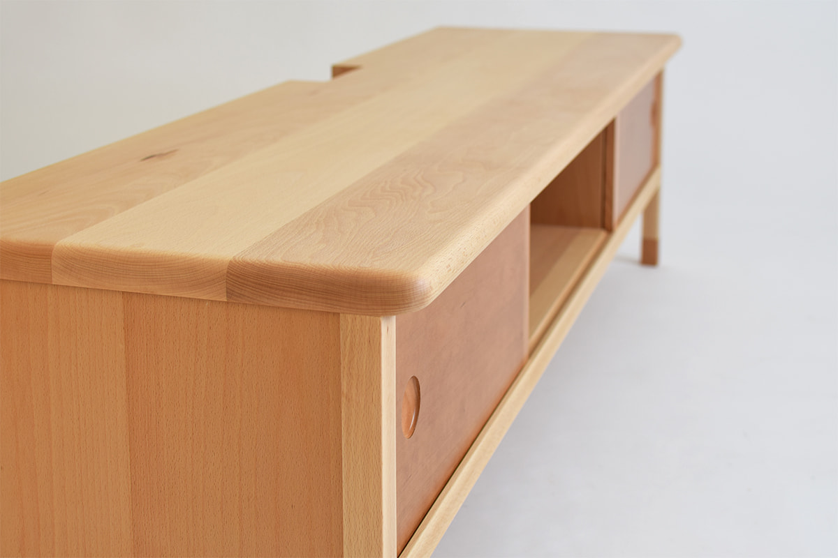 works - 家具の製作/修理・リメイク事例 一覧へ オーダーメイド家具 ビーチ×チェリーのテレビボード(面取り有) シンプルで上質なテレビボード。扉にはチェリー材、その他にはビーチ無垢材を使用。天板の正面部分を少し前に出して面取り加工を施し、角に丸みを持たせました。小さなお子さまがいらっしゃるご家庭でも安心してお使いいただけます。 close