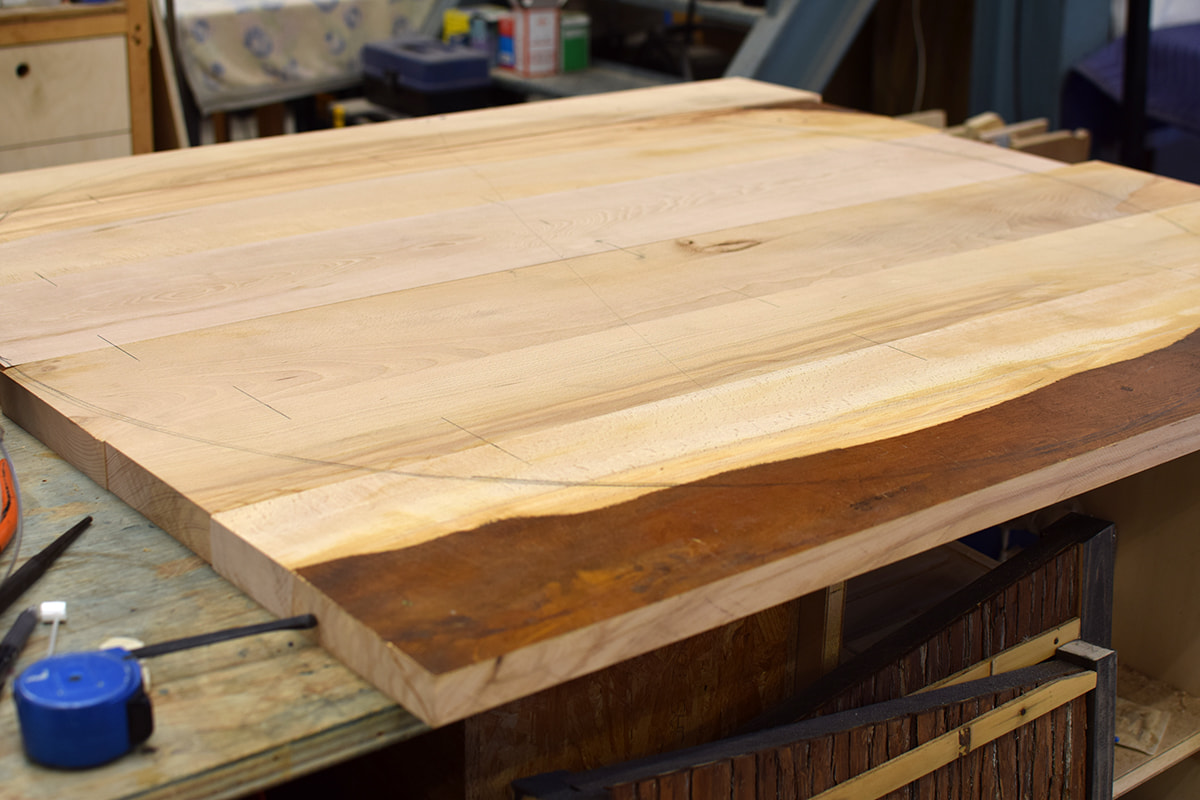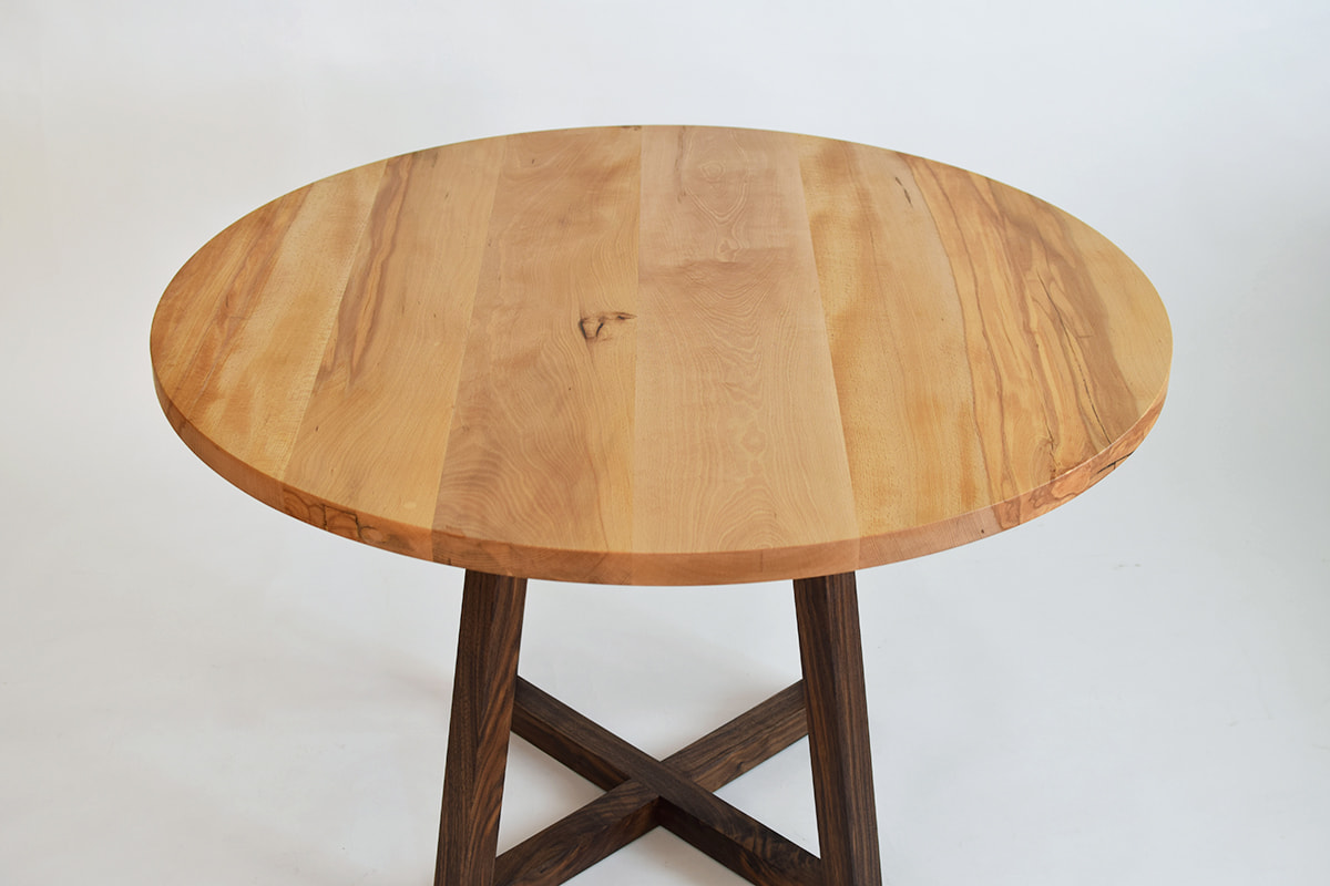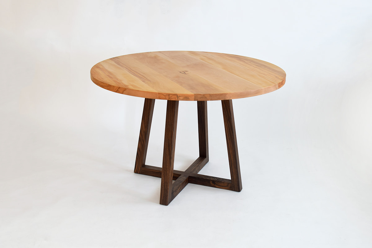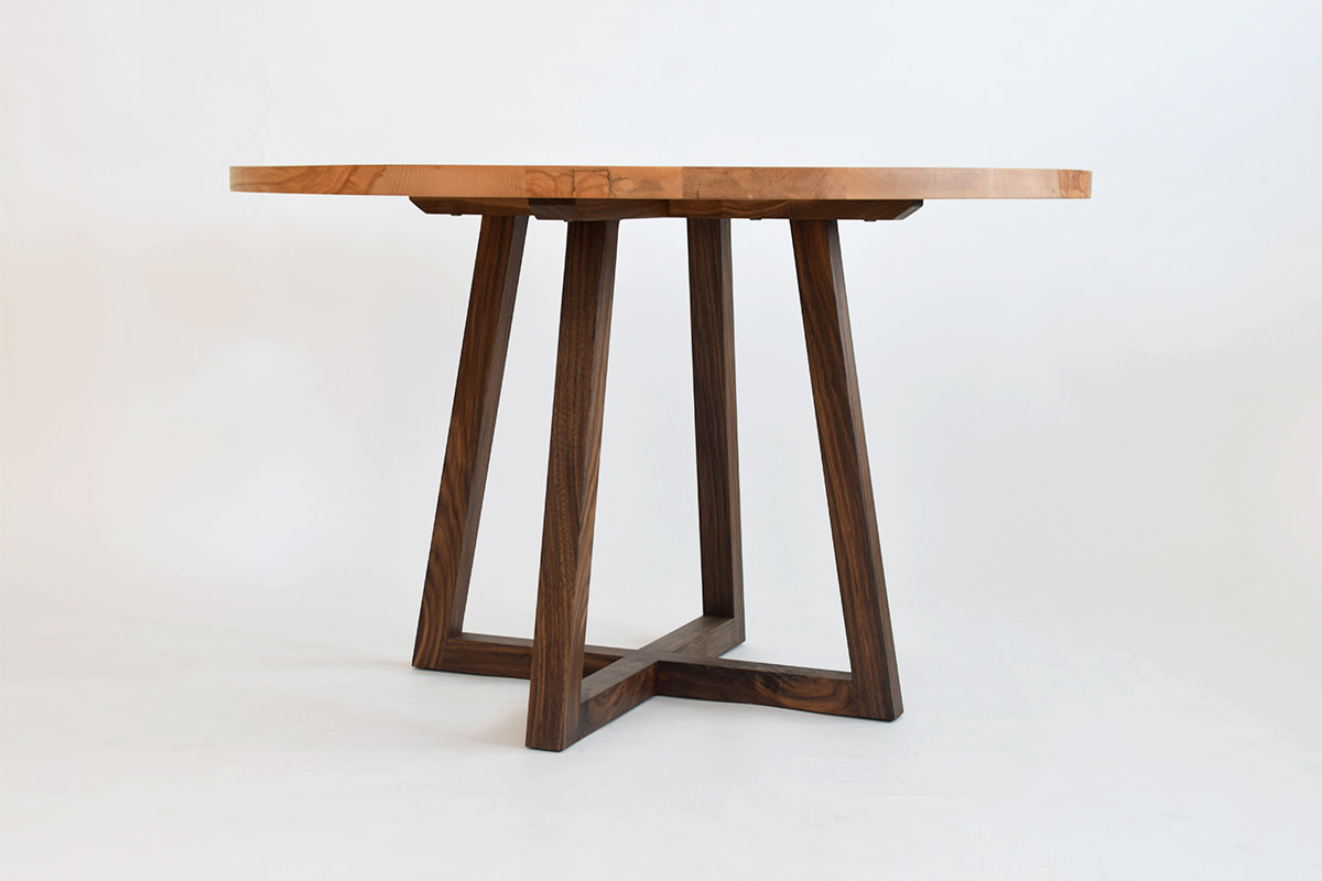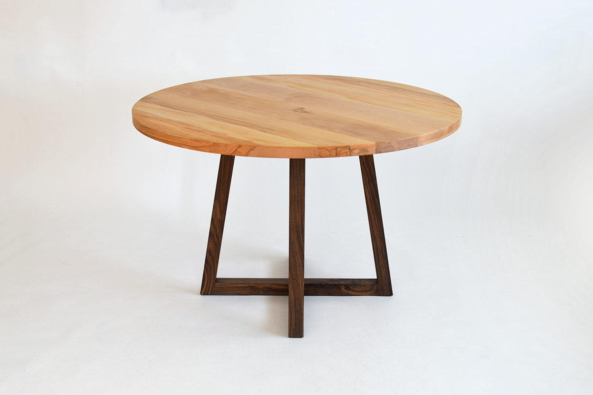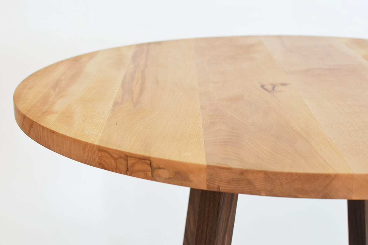 works - 家具の製作/修理・リメイク事例 一覧へ オーダーメイド家具 ブナ×ウォールナットの円形リメイクテーブル ご不要になられた大きな座卓をダイニングテーブルにリメイク。 厚みのあるブナ無垢材の座卓の天板を剥ぎ直してから丸くくり抜き、塗装を剥がして、新たなテーブルの天板に。 脚はウォールナット無垢材で新たにデザイン・製作しました。 close