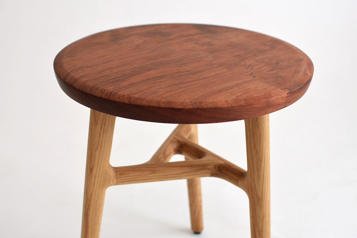 丸い加湿器を置く台としてオーダーいただいたので、天板は円形に。