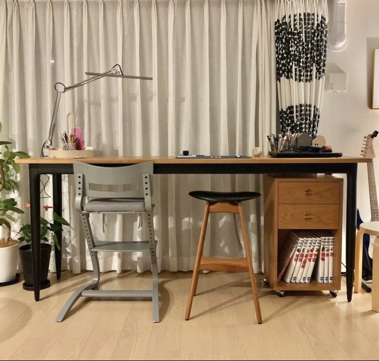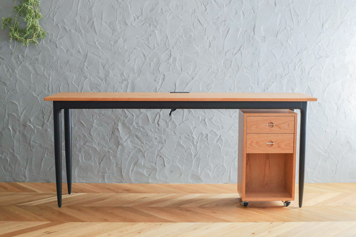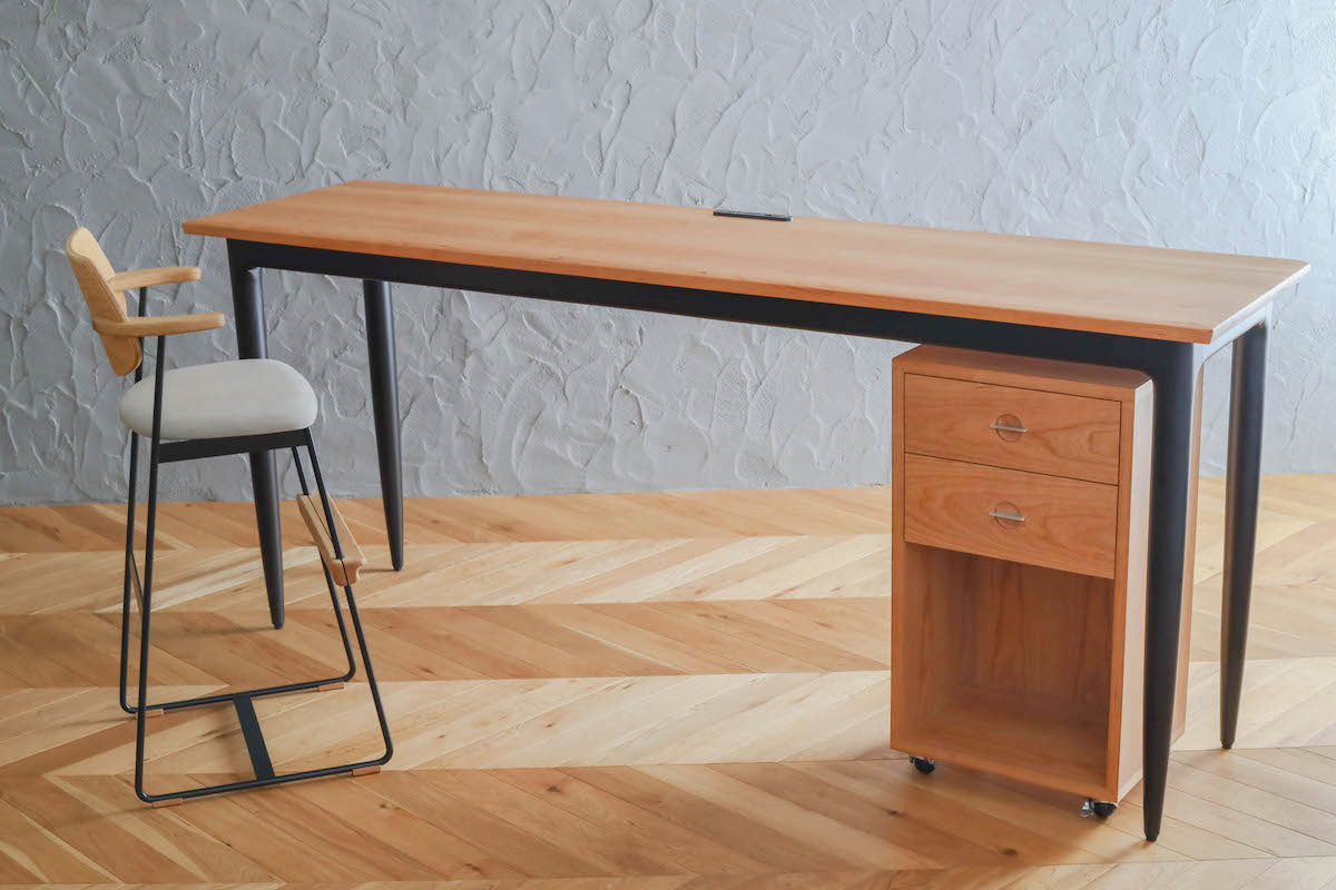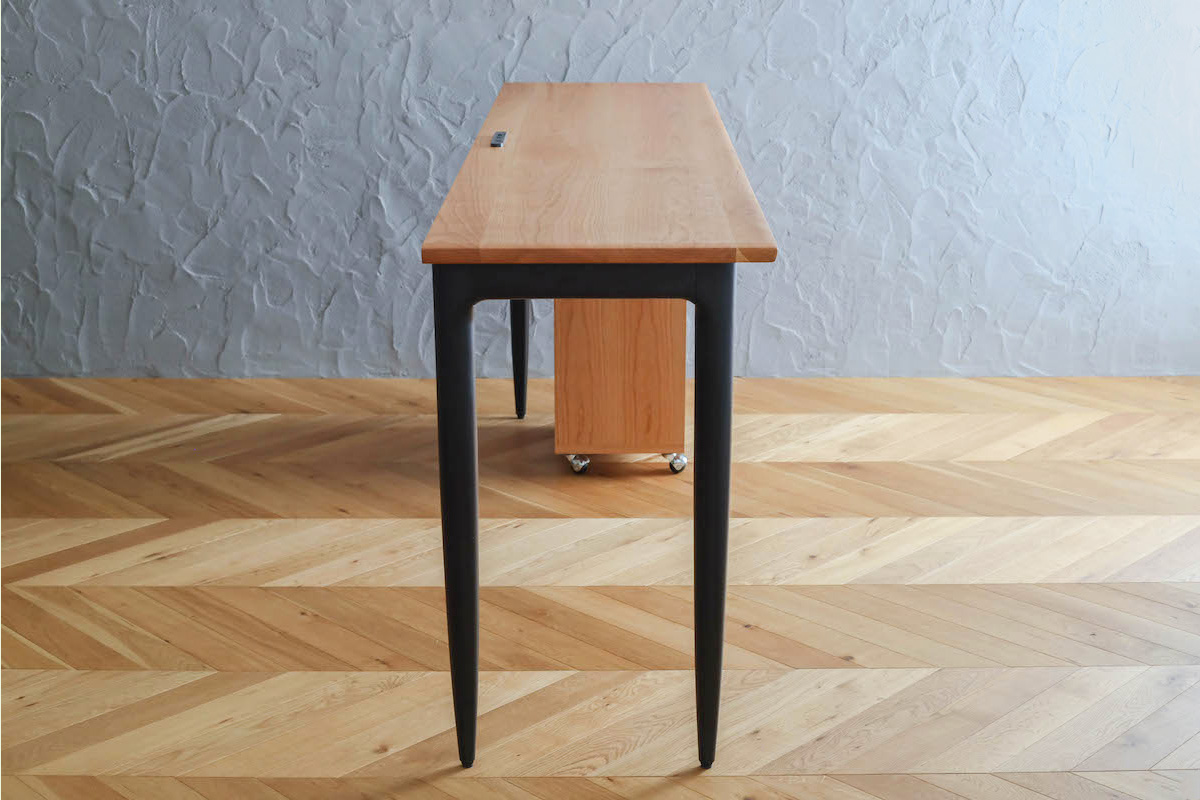 デスクの高さは85cm、先にご購入の「yu-counter stool」に合う高さ、天板には電源タップを設置してPCやスマホの充電も問題なくしていただけます。