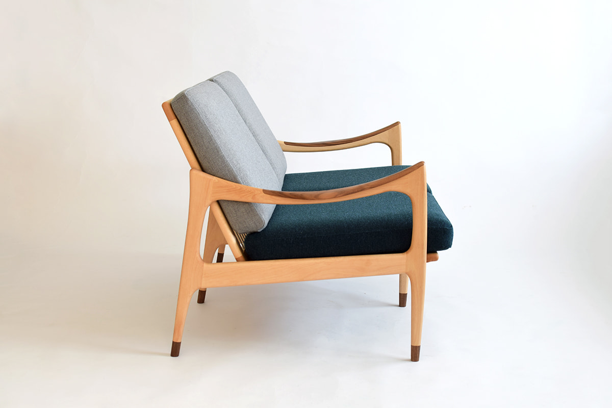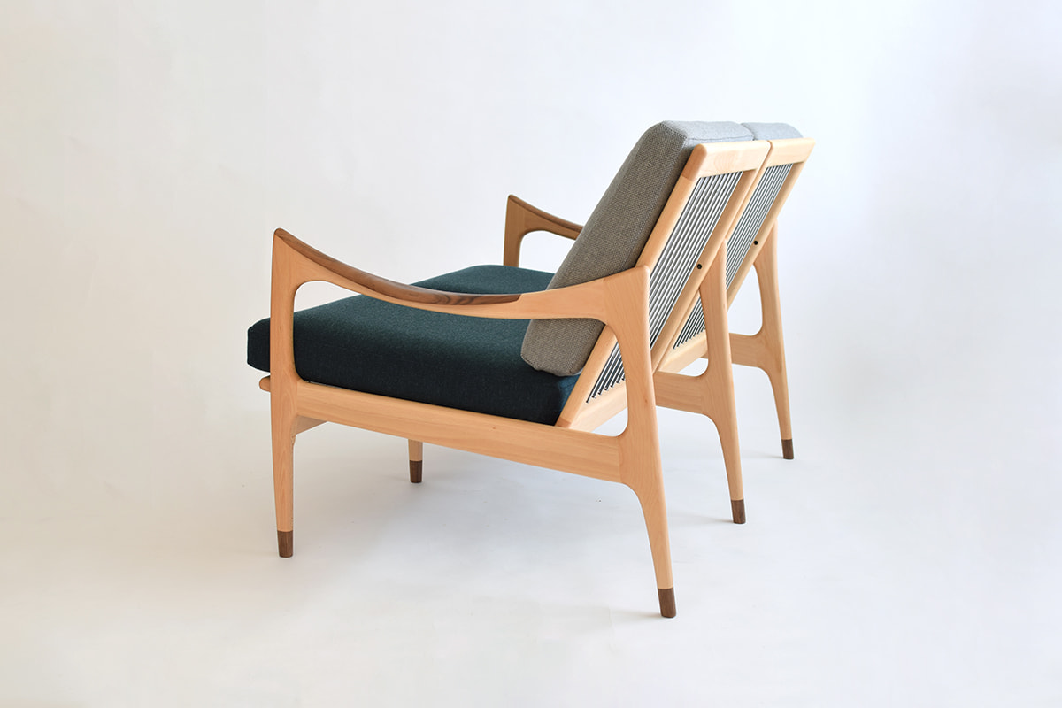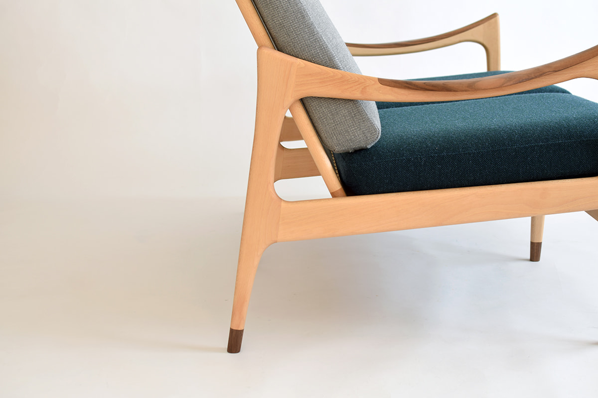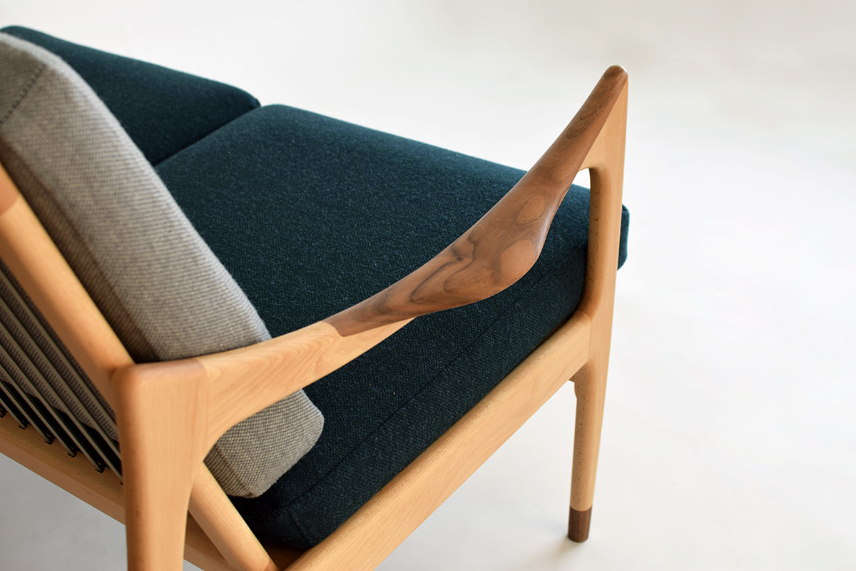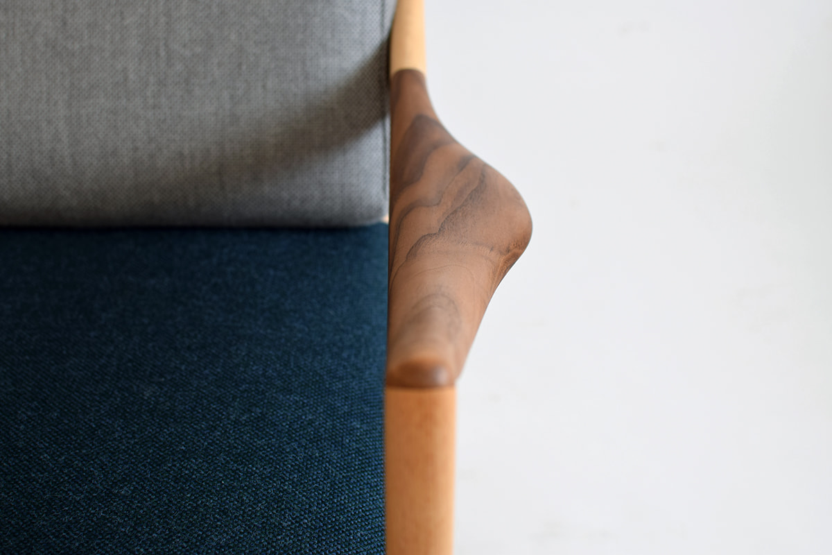 アームと脚先部分の樹種は標準仕様の場合チェリー無垢材ですが、ウォールナット無垢材でオーダーいただきました。