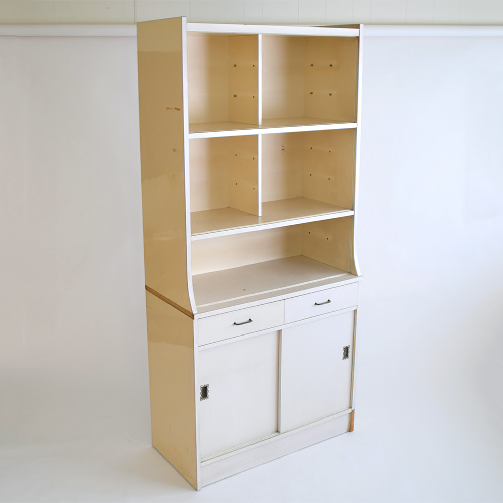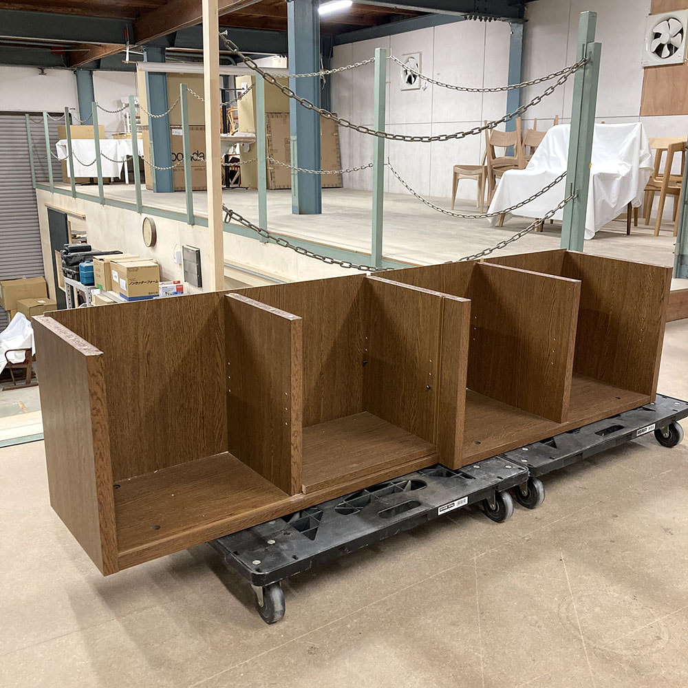 食器棚の高さ変更(仕上がりH1052mm)、背板交換、下段をゴミ箱収納にするため補強