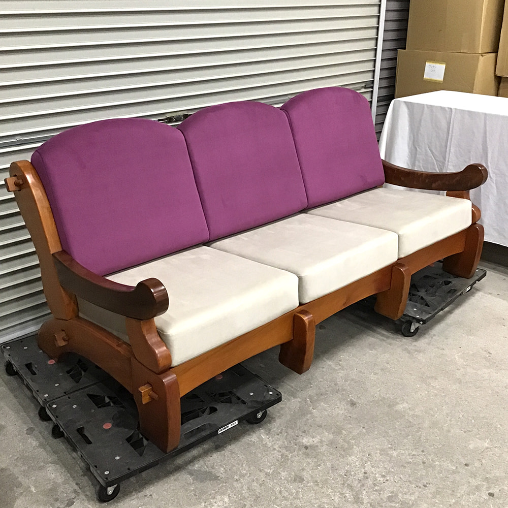 三人掛けソファの背・座クッション製作、フレーム着色補修