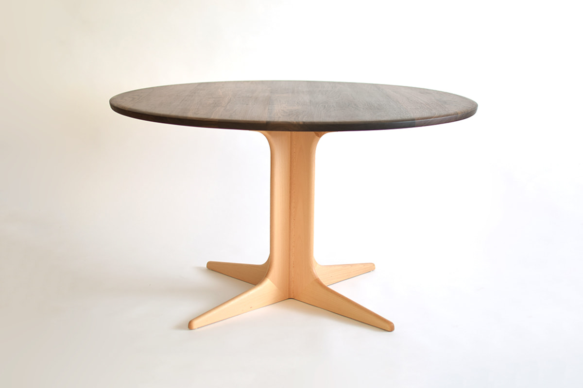 ウォールナット×ビーチの丸テーブル