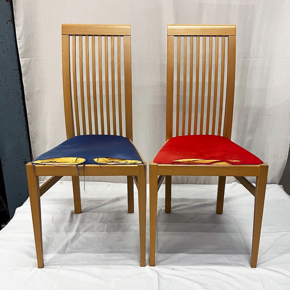 ダイニングチェアの座面張り替え(張地:UrdStripe37・UrdStripe78)
