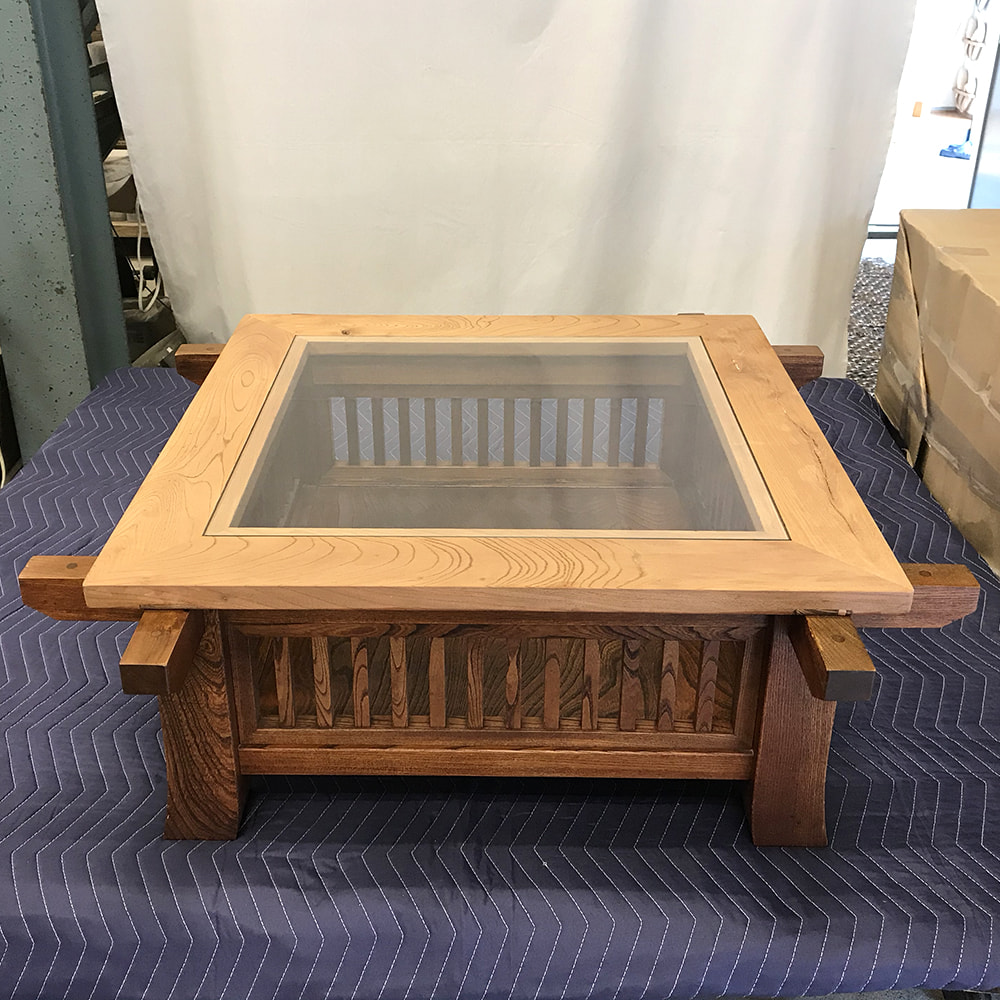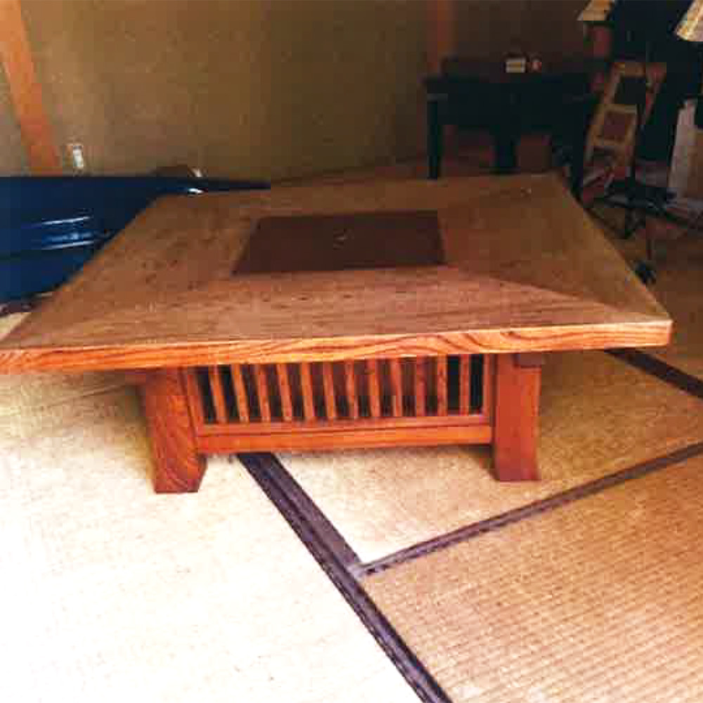座卓の漆塗り変え(黒ヘアライン仕上げ)