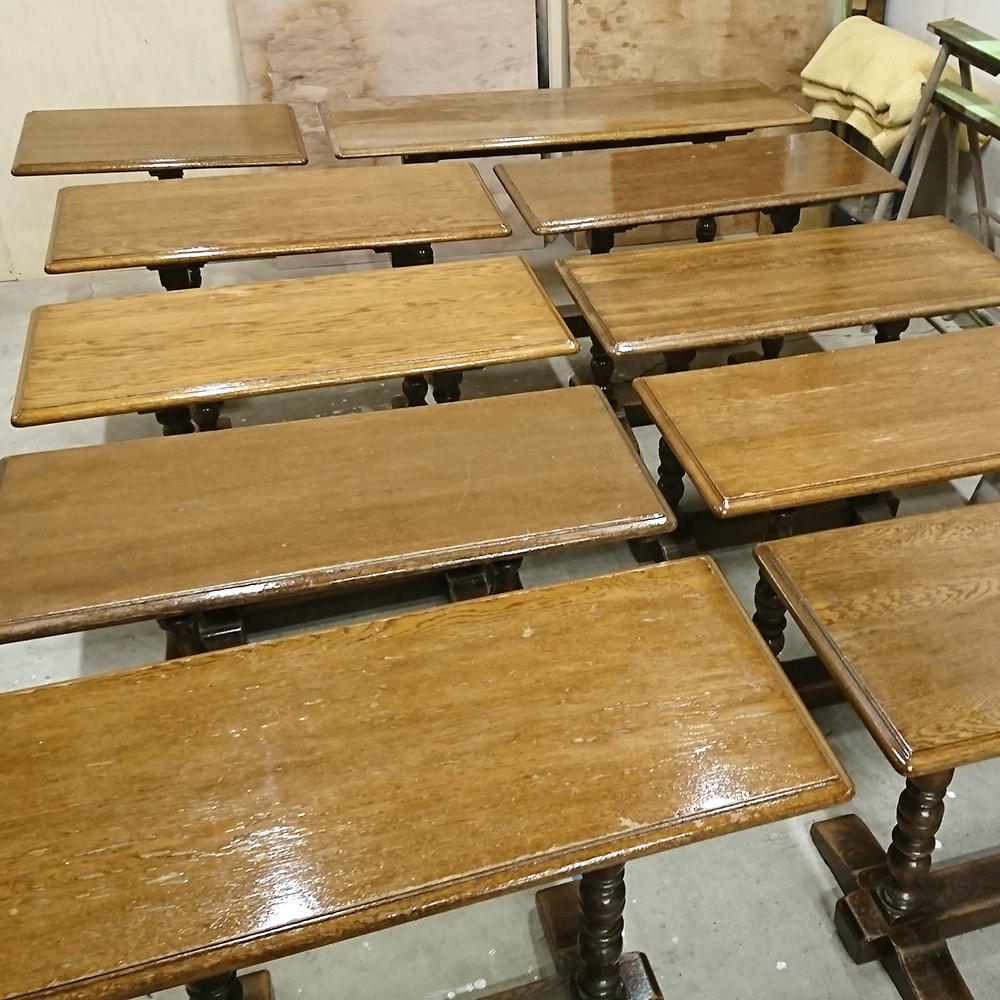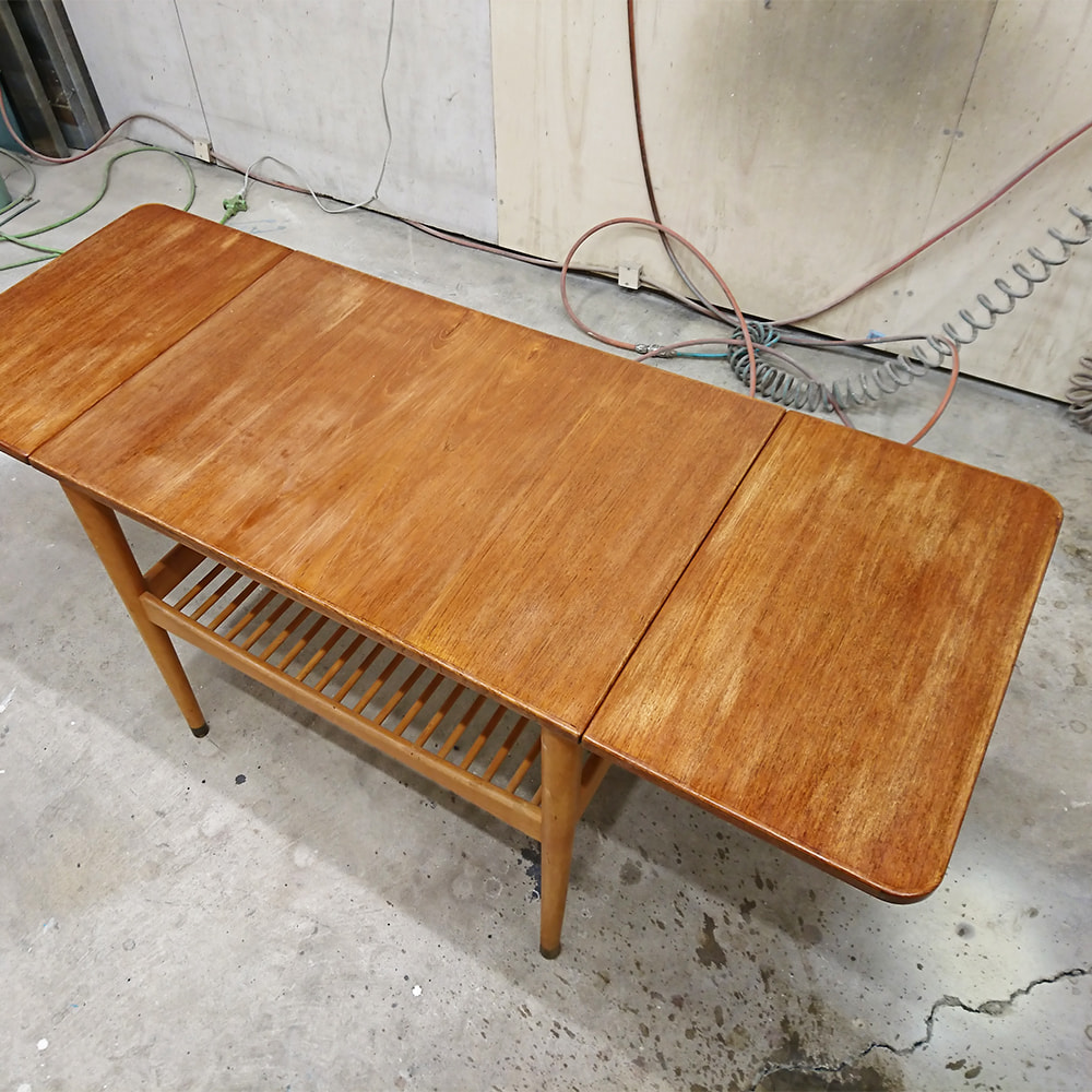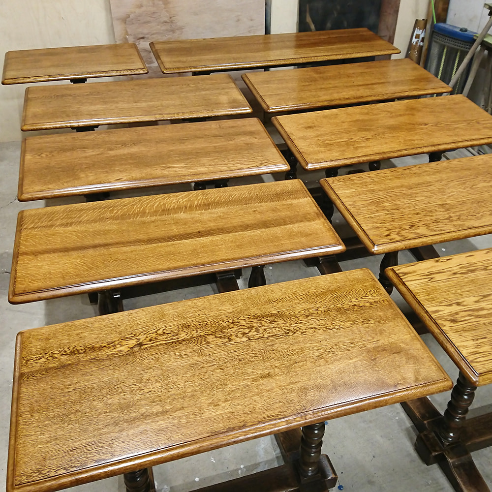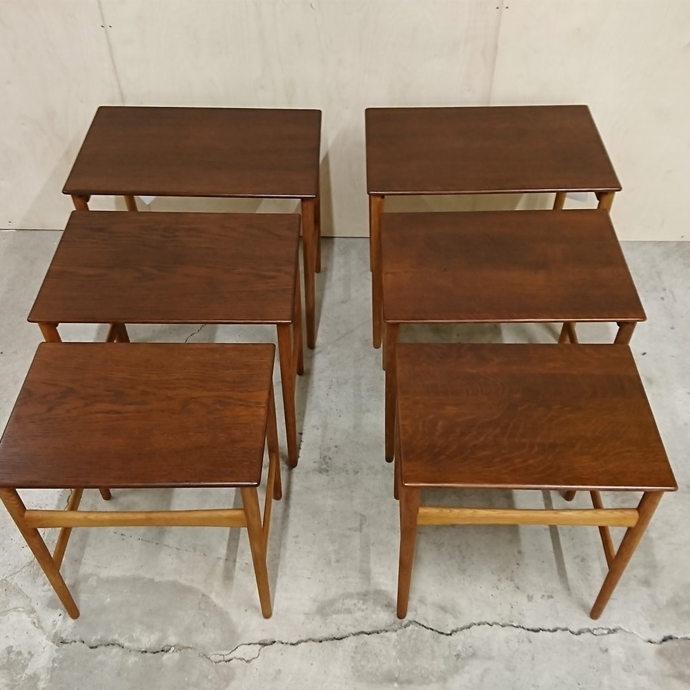 ウェグナー AT40ネストテーブルのナチュラル色3台をブラウン色に色合わせ塗装