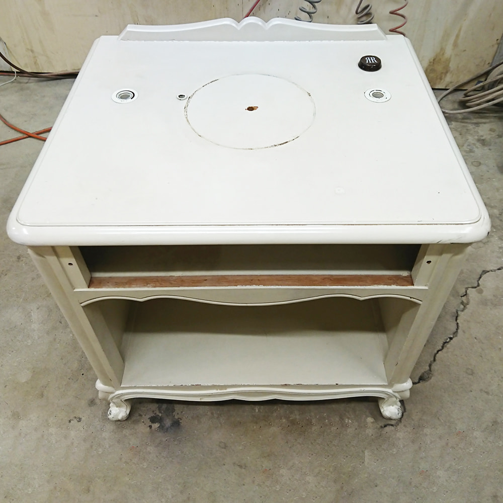 ホテル客室のナイトテーブルの傷補修、全体再塗装