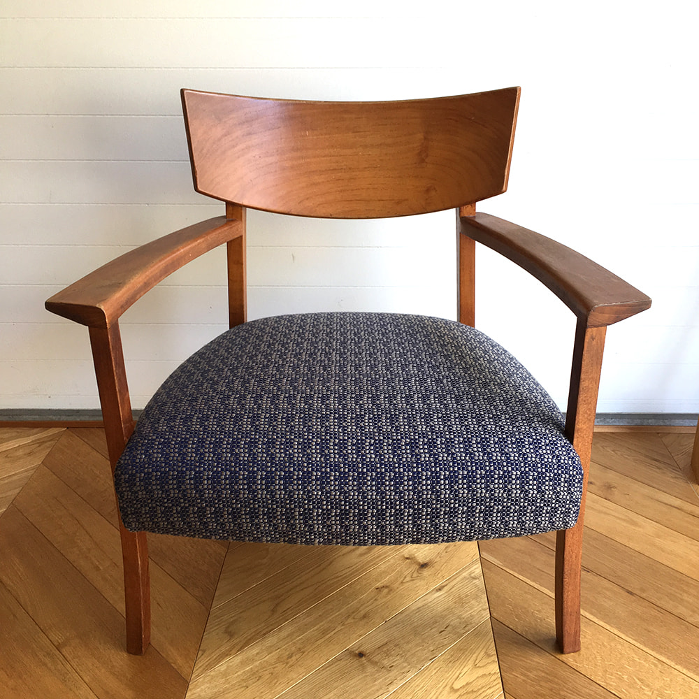 椅子の座面を撥水防汚加工生地に張り替え、内部クッション交換、木部組み直し