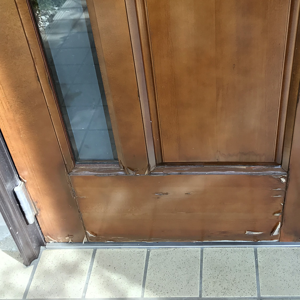 木製の玄関扉・車庫シャッター扉の塗装補修