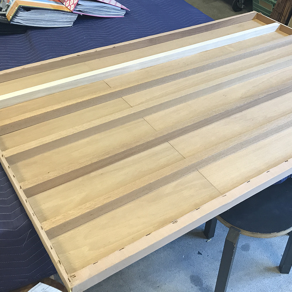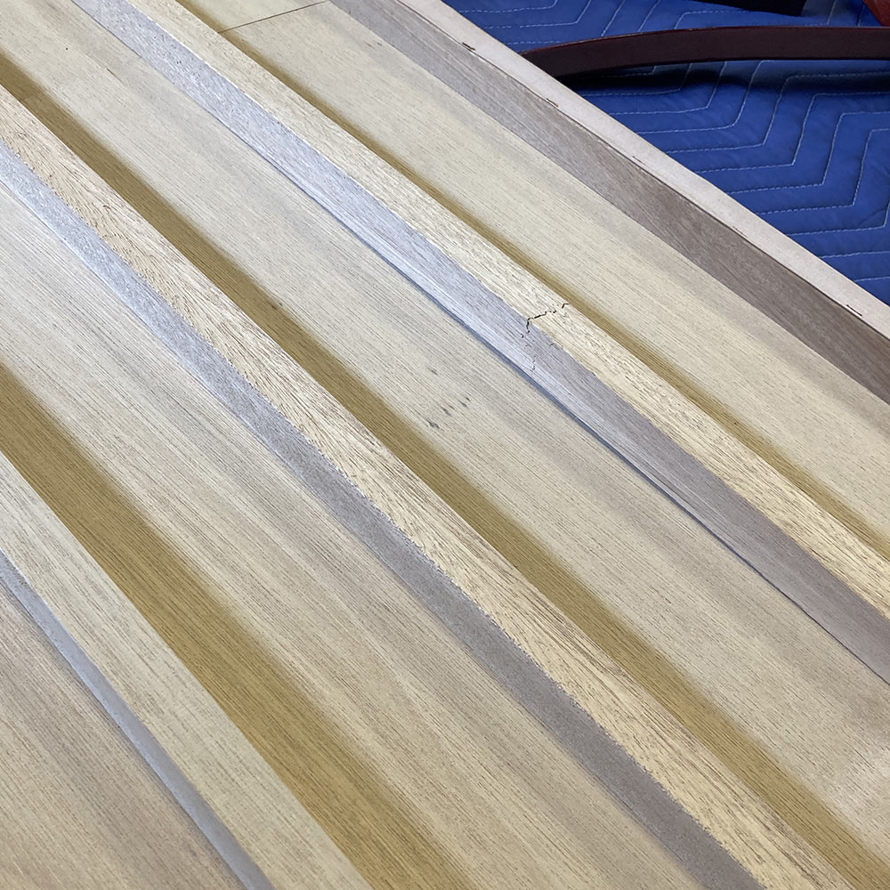 デイベッドの座枠下張りの張り替え、サイドパネルの傷補修