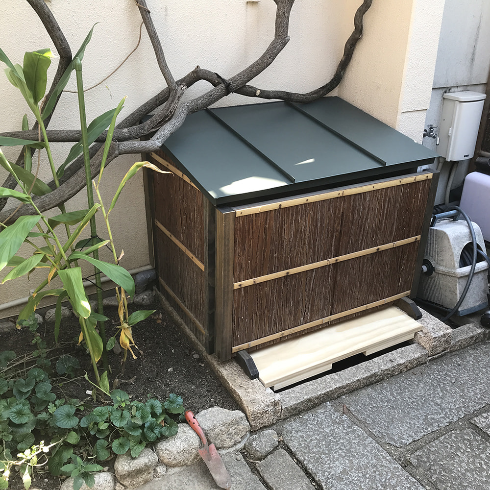 屋外のゴミ箱収納用の小屋のリメイク(ガルバリウム鋼板屋根+板金加工)