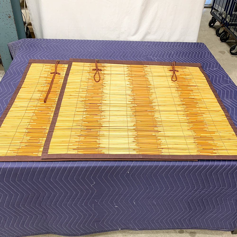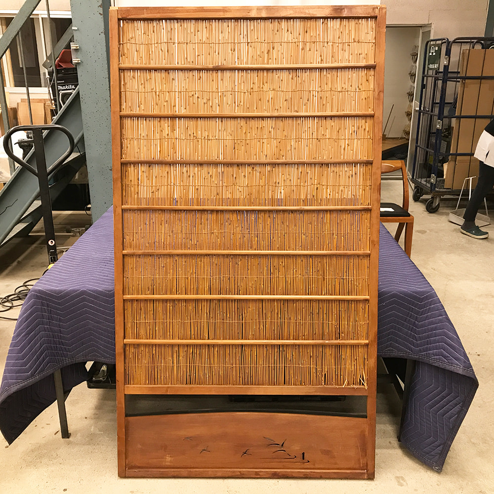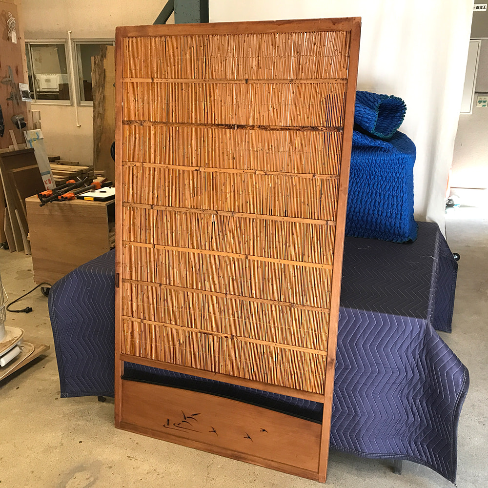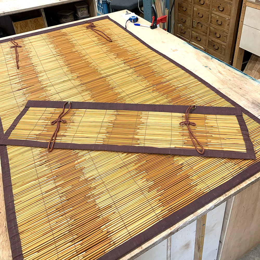 葦戸のメンテナンス(葦を部分的に交換、横糸の一部を編み直し)